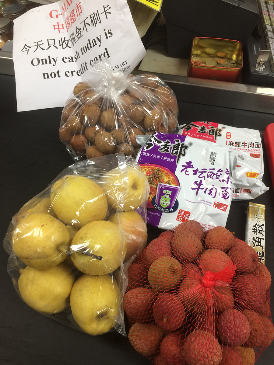 we finished eating by 12:30pm, with enough time to do some shopping at an asian supermarket. we went to the lincoln street c-mart, where i bought some longyan and lizhi. when i went to checkout, the cashier pointed to a "cash only" sign. the man paying in front of me unloaded a bag (a sock?) full of coins onto the counter. this annoyed the cashier, who was scolding the man while at the same time helping him put all in coins back in the bag. "there are even [chinese money] here," the cashier exclaimed, exacerbated. the man, a chinese of the thickest skin, paid her no attention.