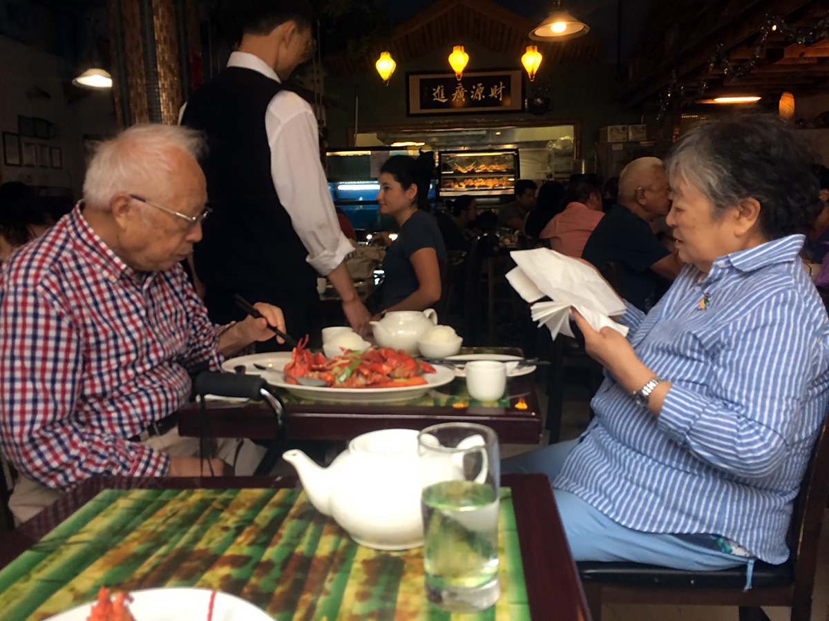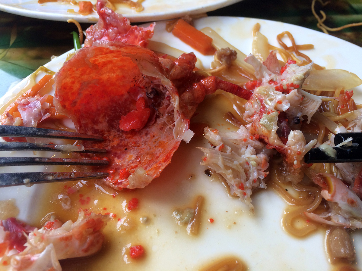 it took a while for the good to get here, the lobster arriving before the noodles. what we ordered looked so delicious, several restaurant patrons were jealously eyeballing our order. likewise, we were like an advertisement for the restaurant, as pedestrians walking by drooled over our lobster lunch. in fact, i'm sure were were personally responsible for drawing in at least two tables, one an elderly couple who got the table right next to us (and who ordered the lobster as well), the other a quartet of young coeds on an culinary exploration of chinatown.