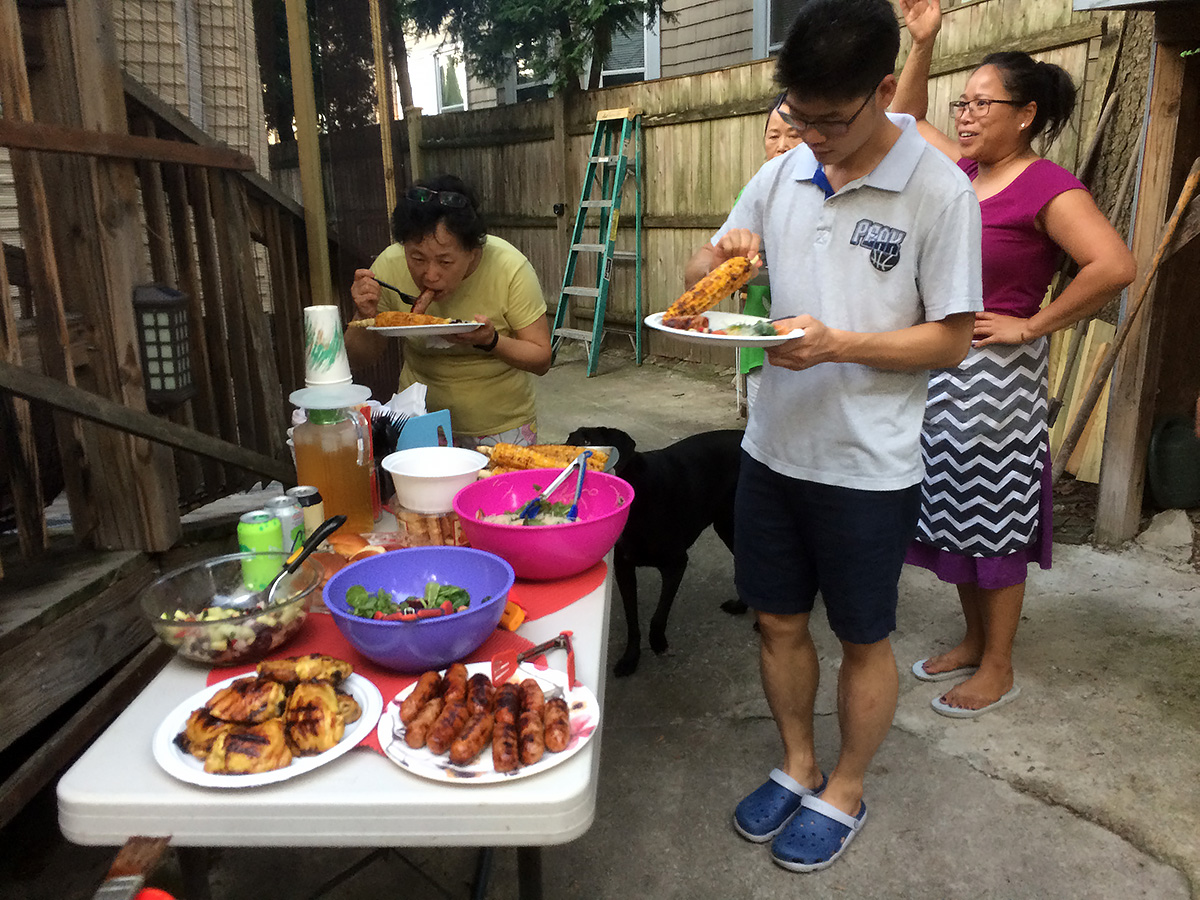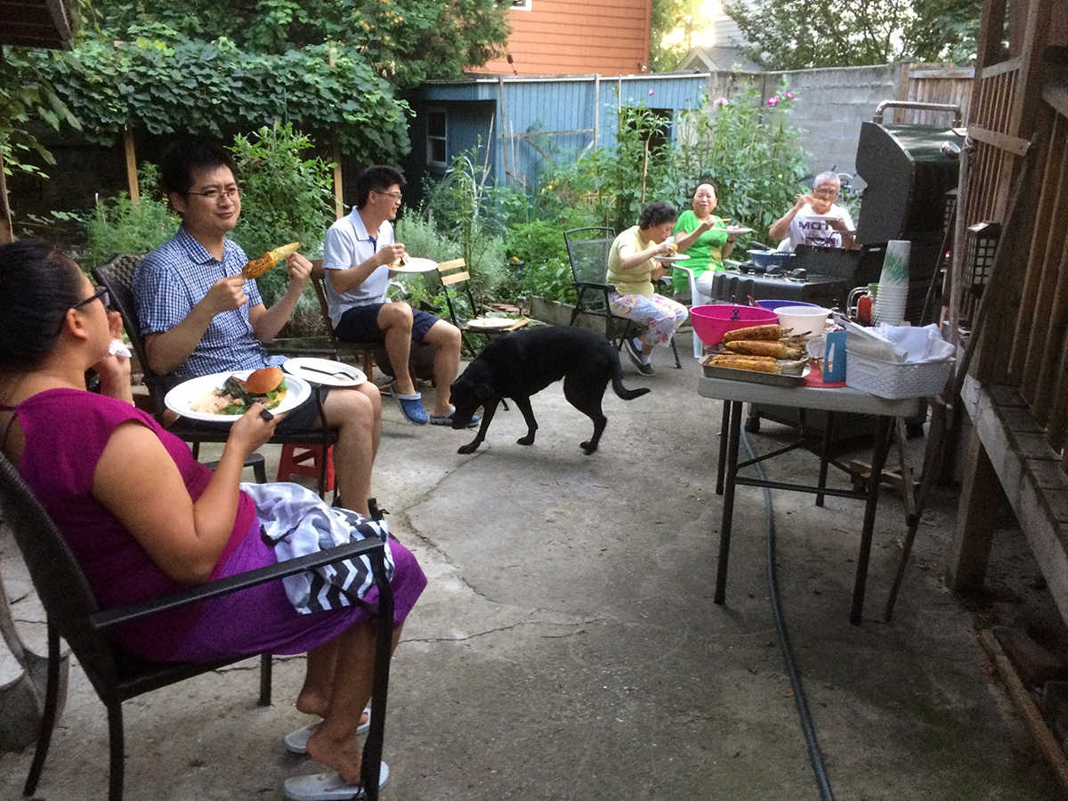 i'm not sure why we started the barbecue at 6:30pm, which seems to be a terrible time, as sunset this time of the year is a bit after 7pm, and dusk is when all the mosquitoes come out. i was bothered by a mosquito initially, but it left me to find more choice blood meal. eventually it got so dark it was time to call it quits, but by then everyone had already ate. everyone moved inside to my sister's place to enjoy the air conditioning (did i mention today was an oppressively hot and humid day?). i left by 8:30pm, which was about the time everyone else left as well.