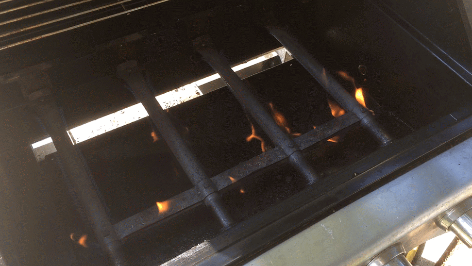 next i moved on to the barbecue. with proper cleaning, i figured we could revive it back to its former glory state. i removed the grates and shields and sprayed them with cleaning foam. i inspected the inside of the barbecue and saw that the carryover tubes were rusted through, hence the flare ups.