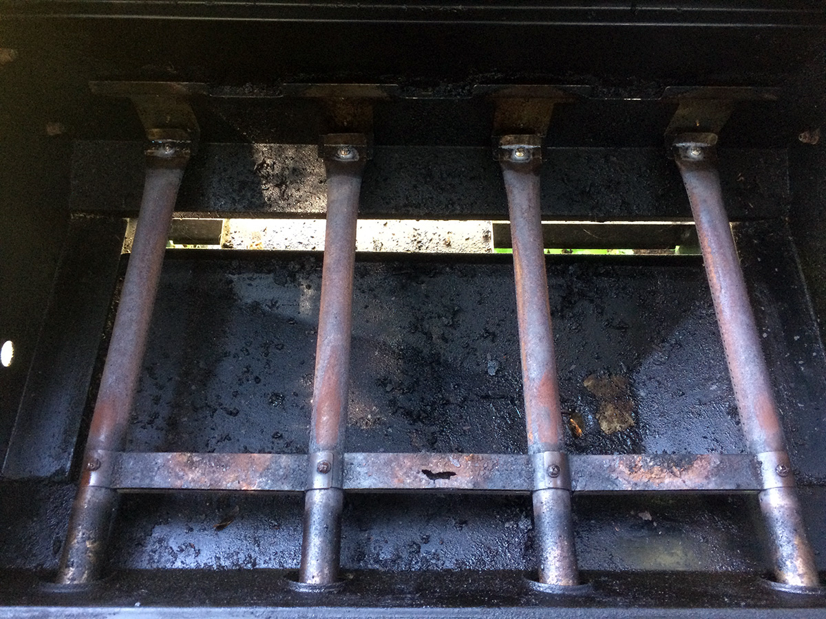 next i went to work on the char broil barbecue grill. i wanted to remove the burners so i can check if they can be cleaned or need to be replaced. i thought it'd be easy but like the windshield, it turned out to be very difficult; in fact it was impossible because i couldn't remove any of the screws, all of them baked stuck. i sprayed with WD-40 but they still wouldn't budge and i didn't want to risk stripping the screws so i didn't try to force it, letting the lubricating oil soak in longer.