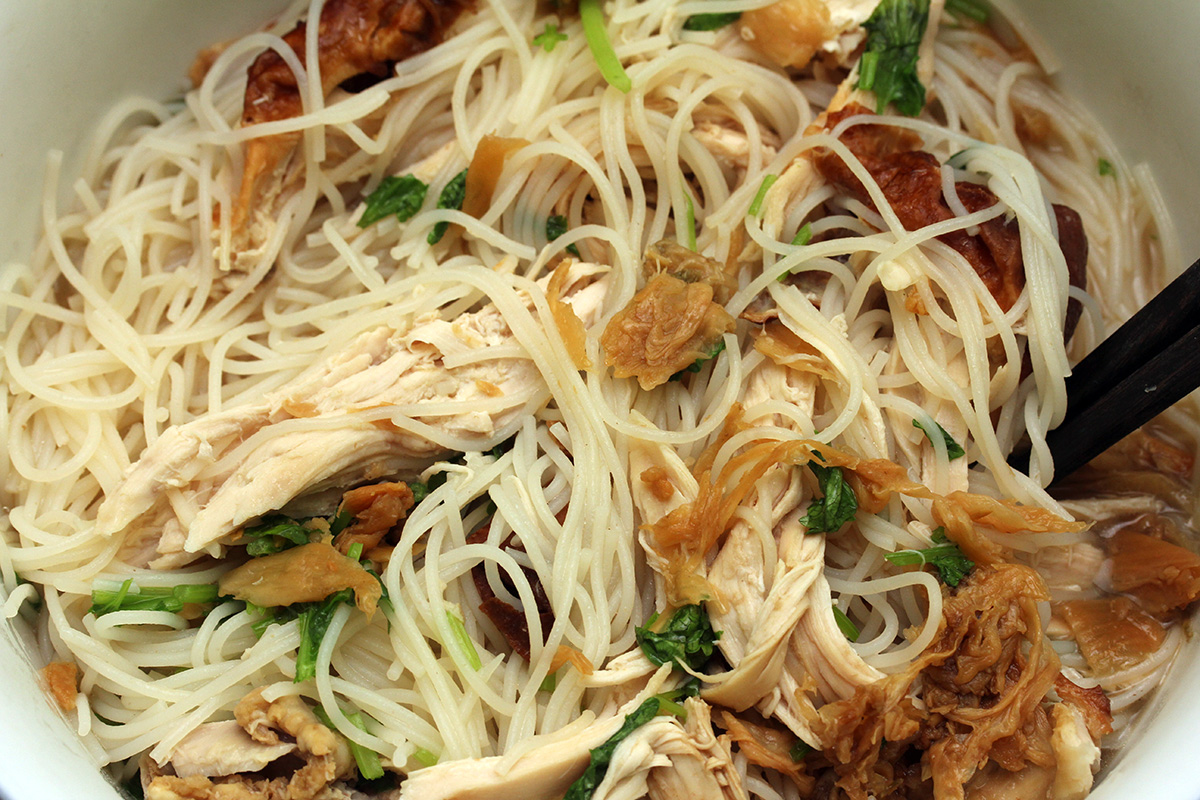 in the evening i took the other half of the rotisserie chicken and made chicken stock out of it. i then used the broth and made myself some rice noodles for dinner.