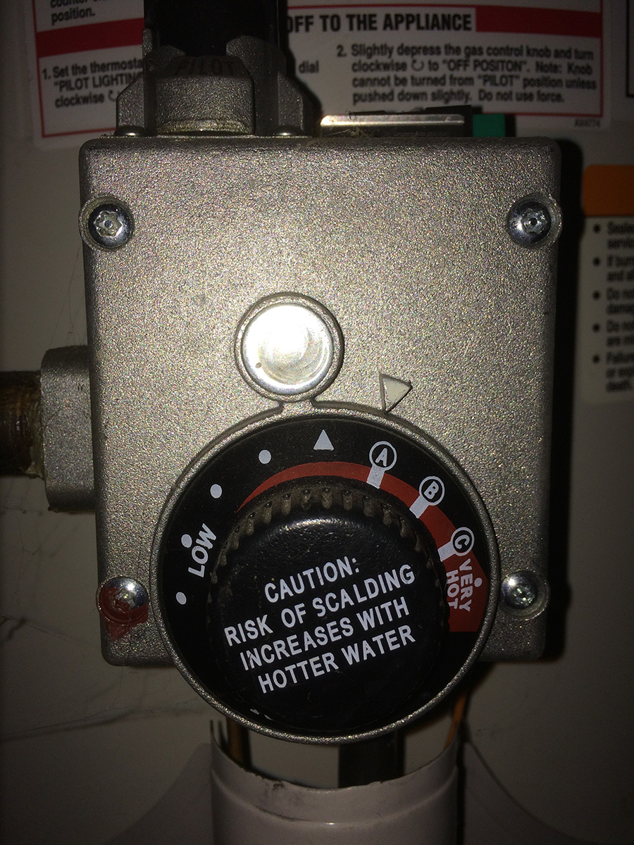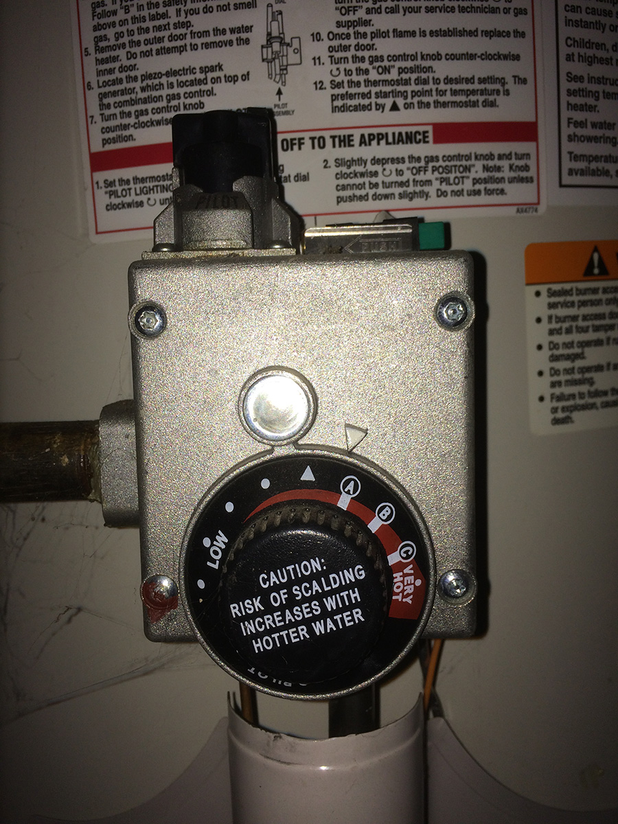 after sweeping the acorn shells and potting soil from my backyard deck (courtesy of squirrels), i went into the basement to turn up the temperature on my hot water tank. i've been noticing for the past few weeks that the hot water seems to be lukewarm most of the time. this is most likely to due to an aging tank (installed back in 2008,