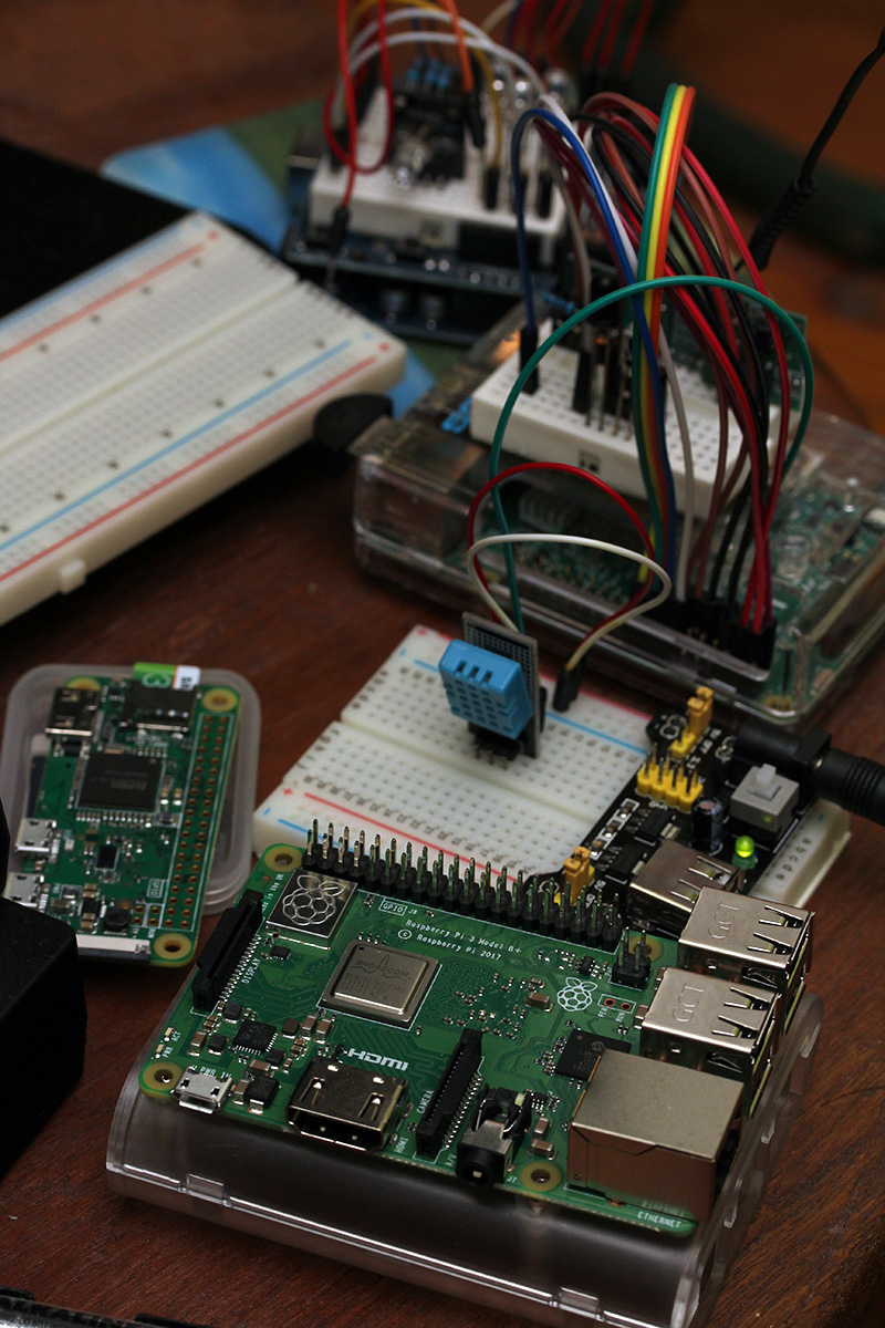 instead i did some work with the raspberry pi, installing a MQTT server and trying to get a DHT11 temperature/humidity sensor to work. i installed all the necessary libraries to test the DHT11 but i couldn't get a reading. all 4 power pins on the raspberry pi were used up (433MHz transceiver pair, infrared transceiver pair), so i had to power the temperature/humidity sensor from a secondary breadboard powered by a MB102 power supply IC. i never got my infrared transceiver setup to work either, so maybe the problem is conflicting software on the pi. i'll try running the sensors off of a clean raspbian install from a different pi3.