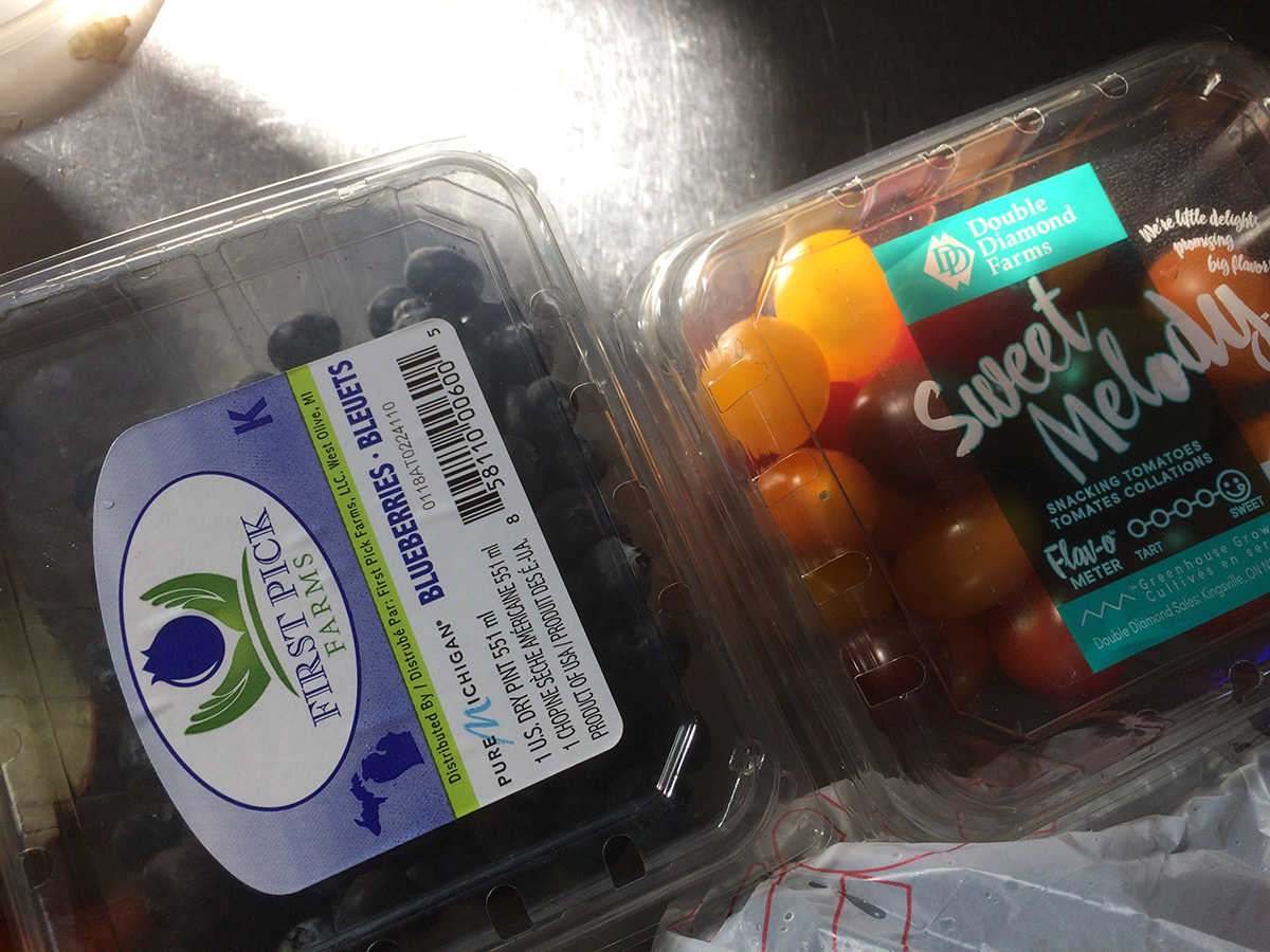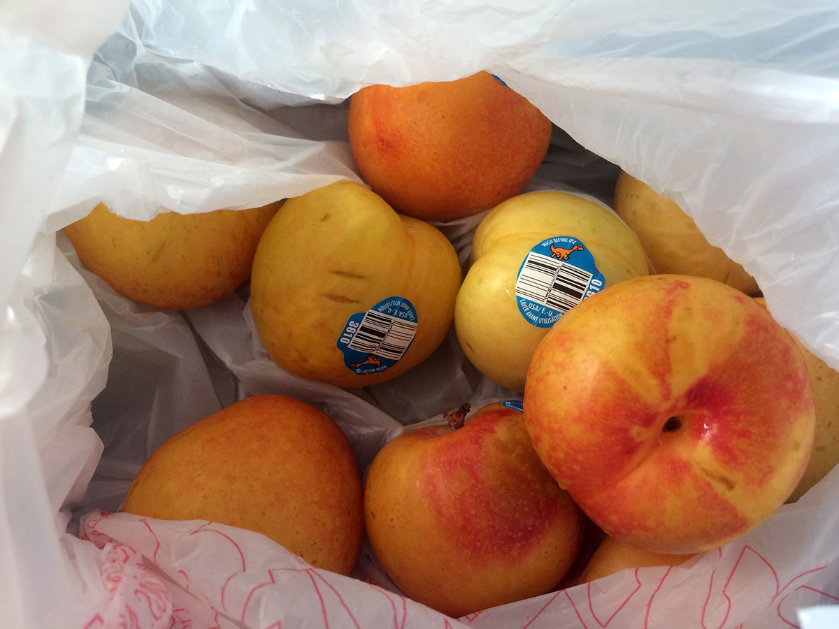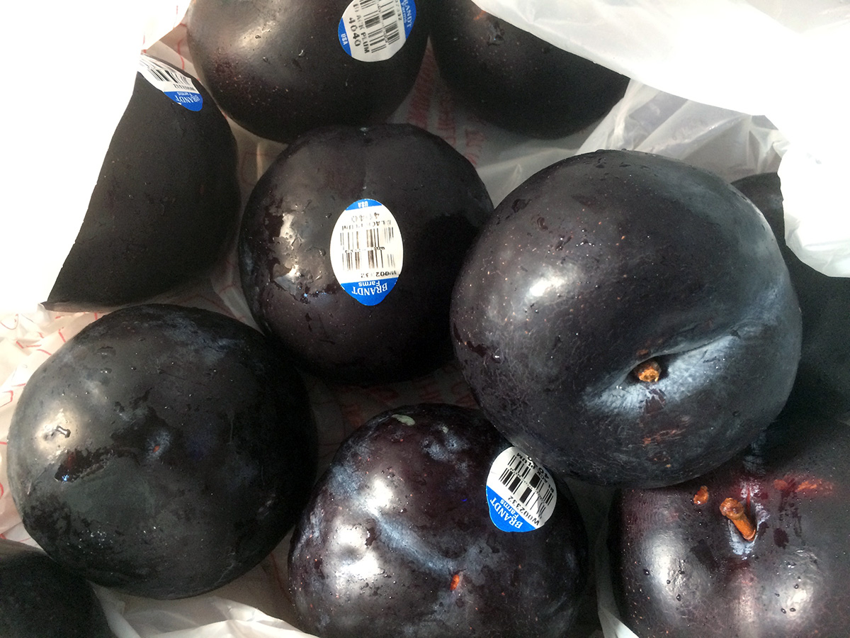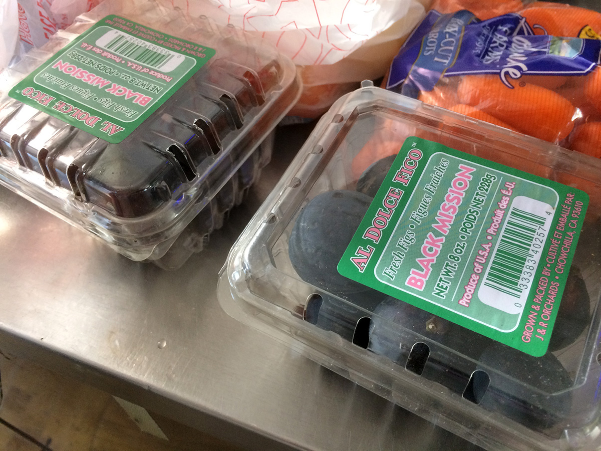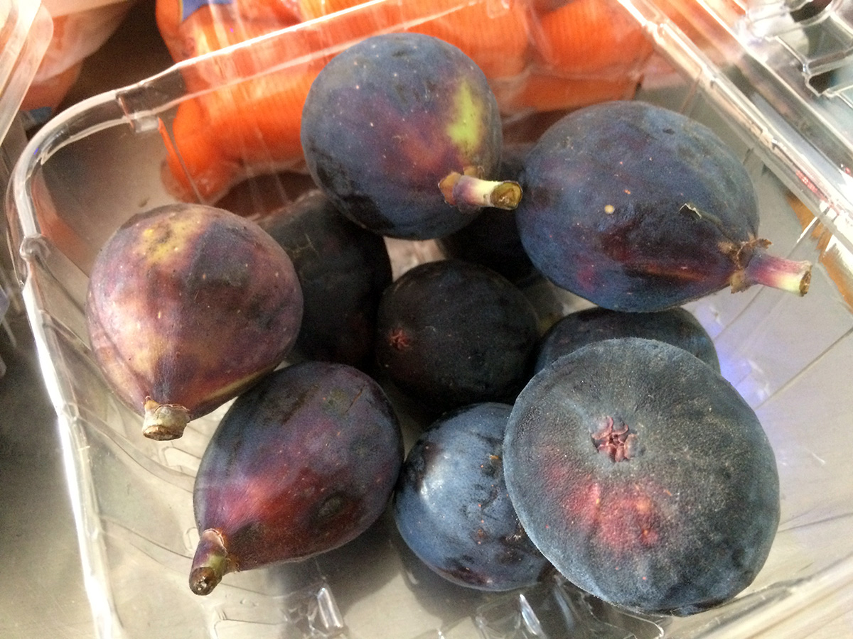 i made a trip to market basket in the early afternoon before leaving for haymarket in boston. it was warm enough that i changed into some shorts and a t-shirt. they were all out of the larger speckled pluots, but one vendor still had the smaller yellow ones for 5/$1. i bought 10. also: 4 avocados for $2, 10 black plums for $2, box of blueberries $1.50, 2 boxes of black mission figs $2, box of multicolored cherry tomatoes $1, 4 bunches of scallions $1, and 1 bunch of cilanto $1.