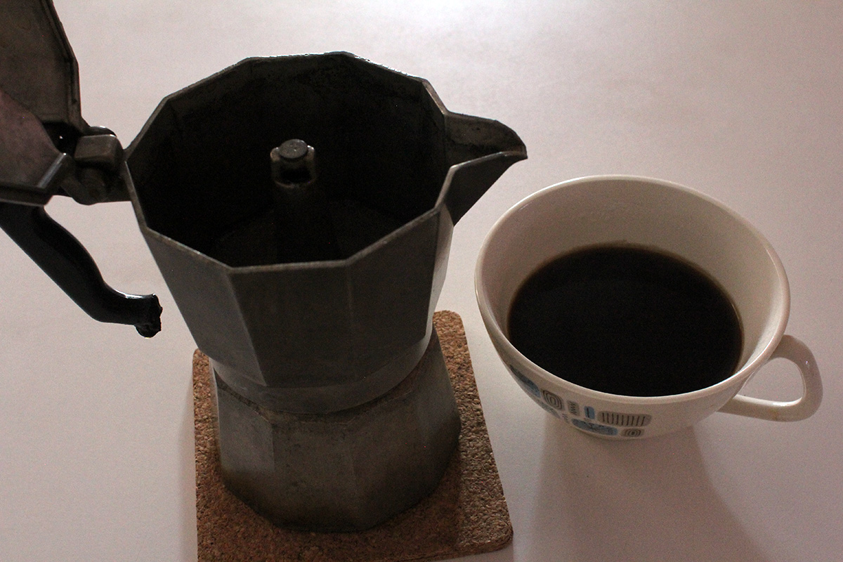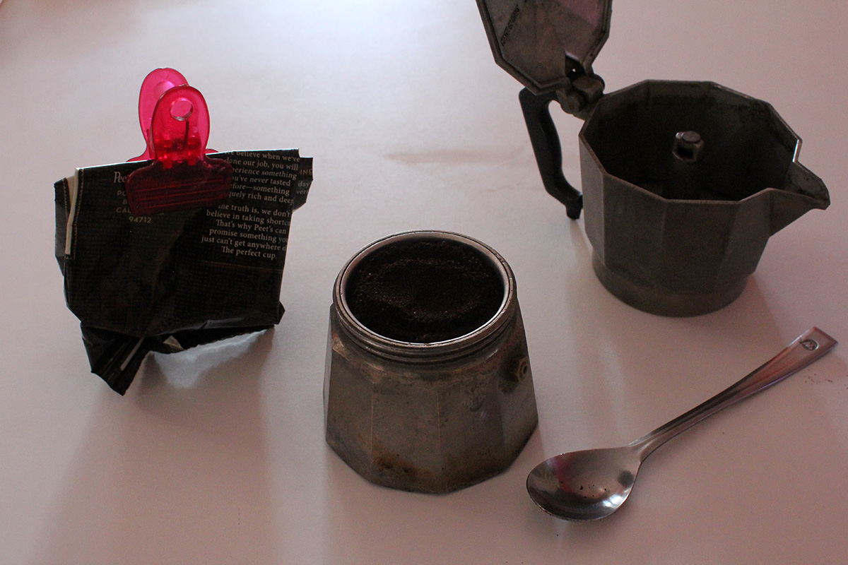 even though this pot was for 3 servings of espresso, the moka pot only made enough coffee for half a single tea cup. i took a sip and immediately disliked it: black and bitter, who would really drink this? i like my coffee with a lot of milk and sugar anyway, so i added some almond milk i had in the fridge. i added enough to turn the black to brown, but that also cooled the coffee to the point where it was barely lukewarm. i added 2 teaspoons of sugar but it was still pretty bitter. i drank it all anyway, almost like medicine, while eating some greek yogurt. less than 15 minutes later i was in the bathroom. could've been the yogurt, could've been the coffee, might very well been both.