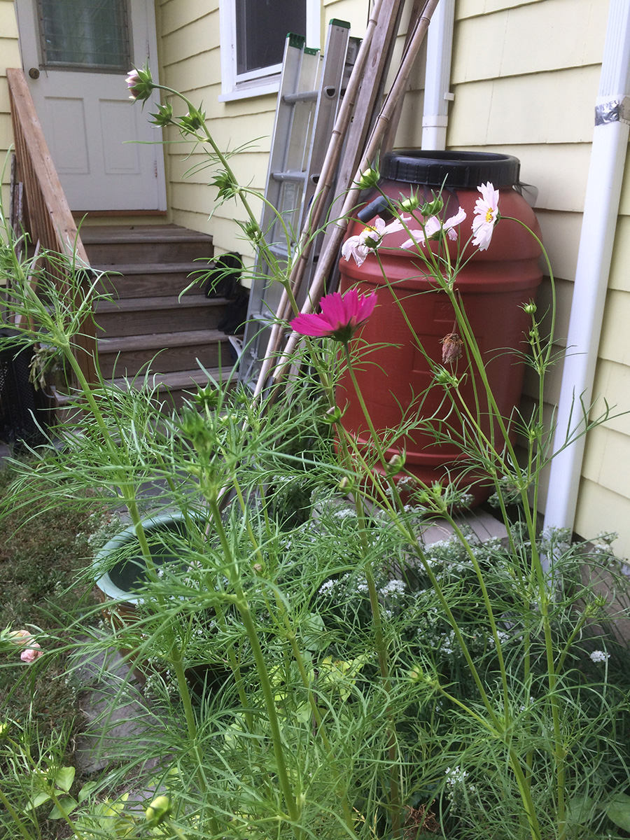 my parents came home around 5pm. my father and i repotted the jasmine plant, dividing it into 4 containers. for soil, we used a combination of home compost, some leftover potting soil, and a bag of topsoil. the compost was too wet and came out of the bin in odorless clumps. we put all the potted jasmines underneath the grapevine trellis so it wouldn't drain in the rain come tomorrow.