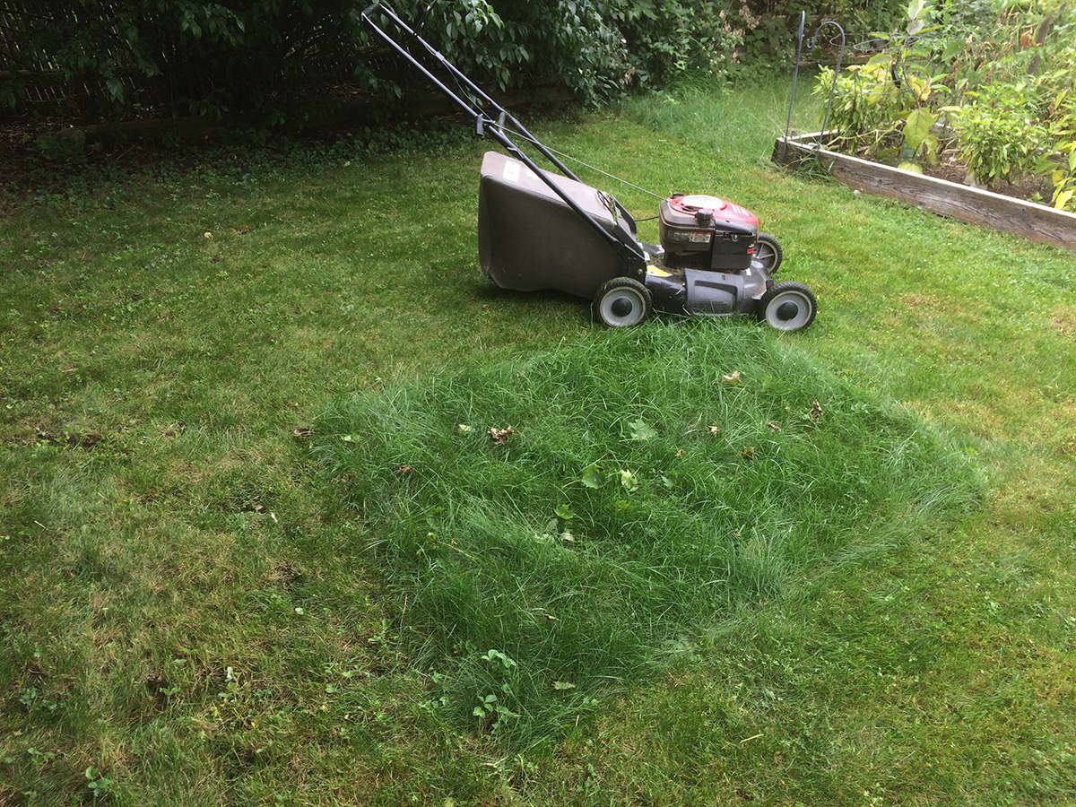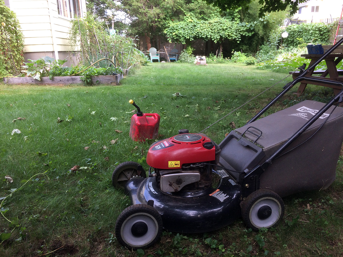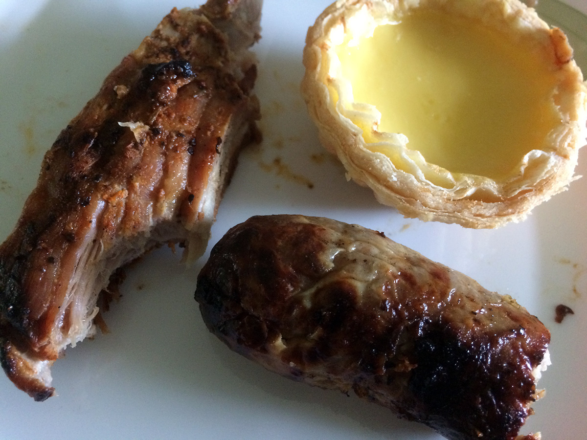 i didn't start mowing the lawn right away, first i had something to eat. i only had a yogurt and coffee, and there was all this delicious leftover barbecue waiting at my parents' place. i had a sausage, a rib, and a custard (apparently from chinatown). only then did i go outside to start mowing. it was the perfect day to mow, since we're expecting a lot of rain tomorrow, so the grass will get a good thorough watering.