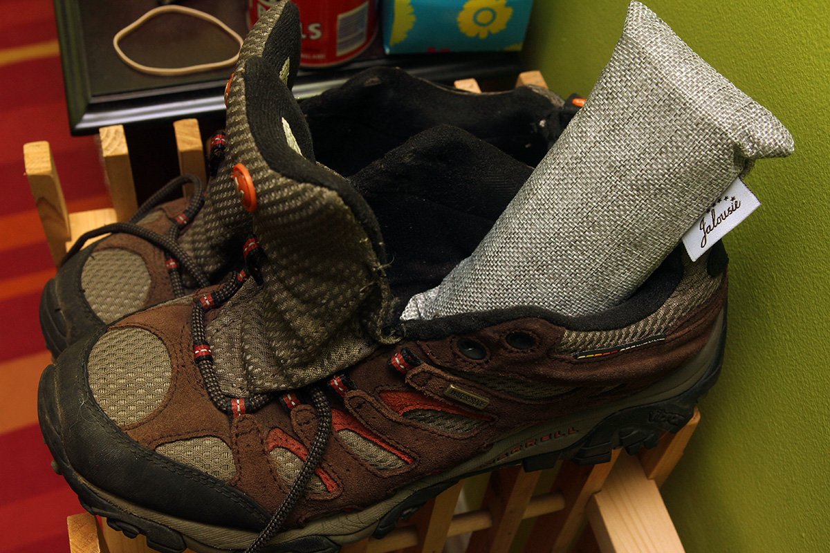 my dozen-pak of jalousie activated charcoal deodorizing inserts arrived today. i stuck a few in my parents' shoes and brought the rest home. how well will they work? who knows. but the activated charcoal test i did on my own seemed to have some effect. it won't make a stinky pair of shoes smell like roses, but it will help in getting rid of some of the odor.