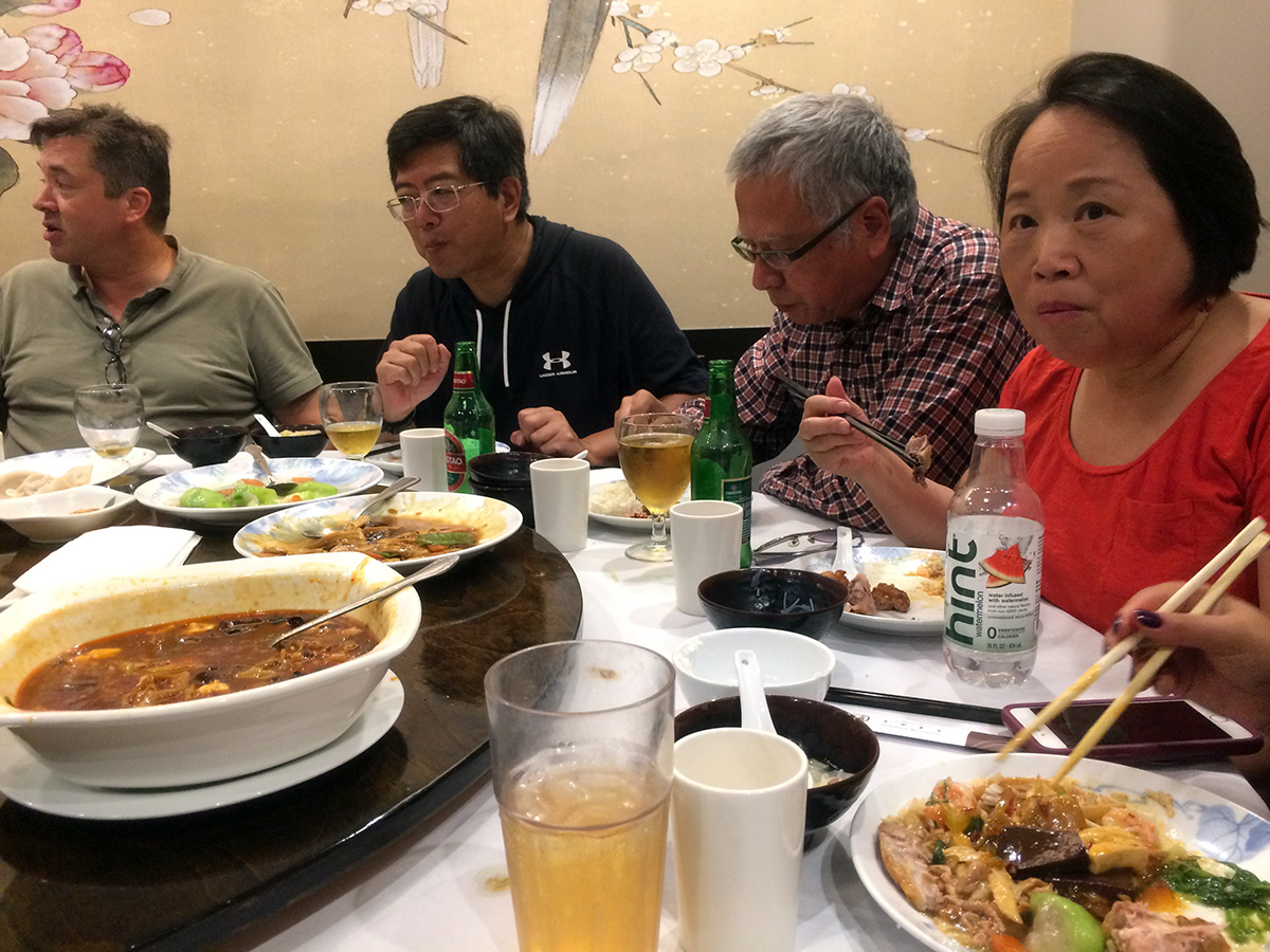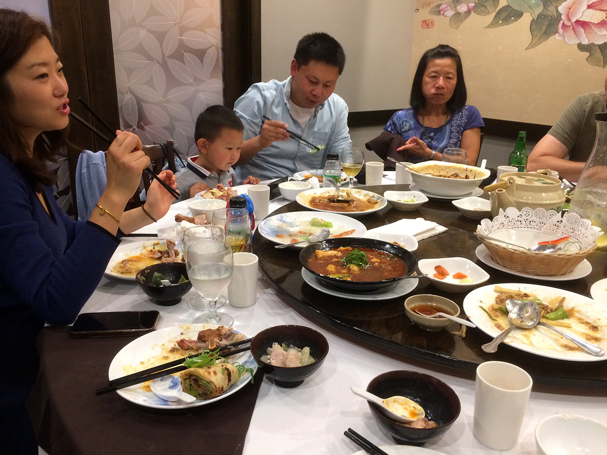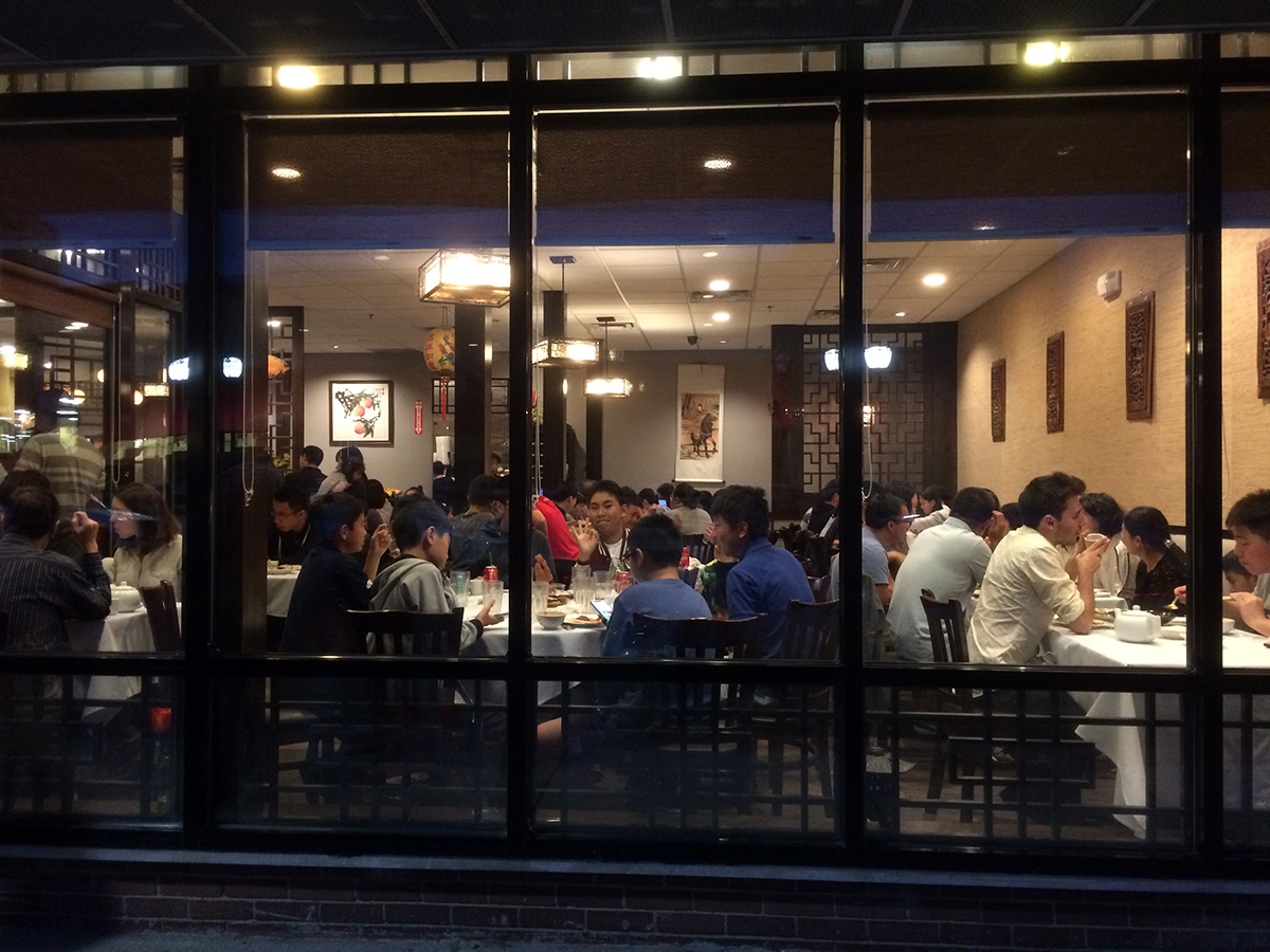 with zhangyu and his wife going back to shenyang next saturday, my aunt treated everyone to one last dinner at the mulan restaurant in waltham. it started early at 5pm, my father having enough time to fill the propane tank before we arrived. eating with small children can be a challenge. anderson was fixated on his show streaming from a phone, so he was was the whole time. his younger brother lucas was more active, grasping at everything within arms reach, always within a hair shy of breaking out into tears at seeing so many unfamiliar faces. zhangyu was telling us how he gave up smoking during the time he was here, mostly because it was causing his teeth to fall out, a gap tooth evidence of that. apparently he tried to get a dental impact but his body rejected the bone graft. after we were mostly finished eating, the men (minus me) slipped out to the mad raven bar next door for some shots before coming back. we finally left at 7pm, the sky outside a dusky blue.