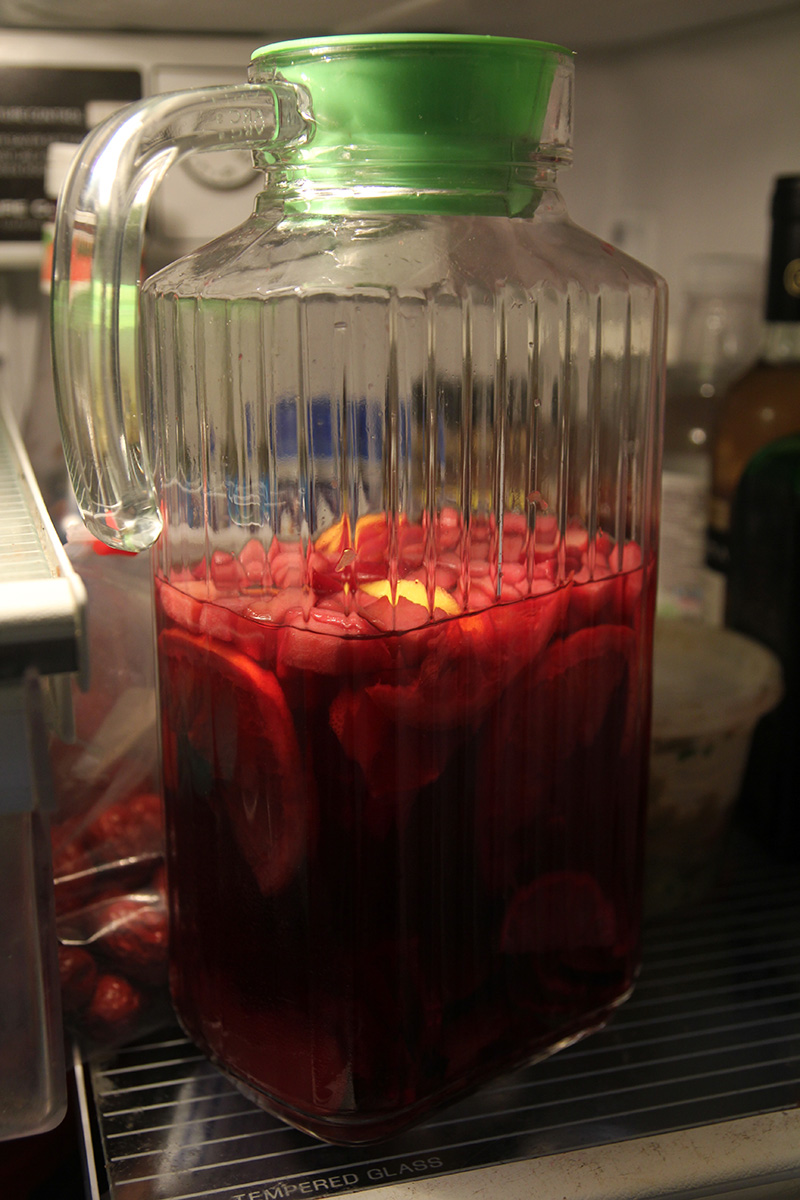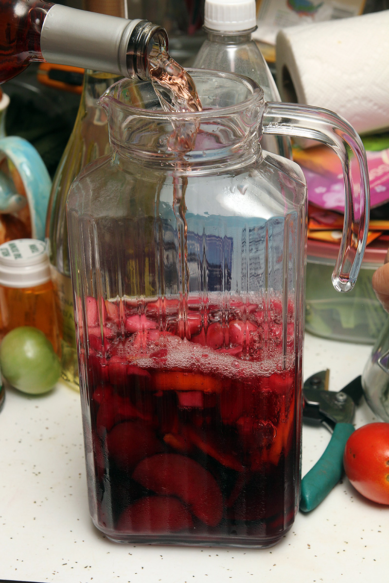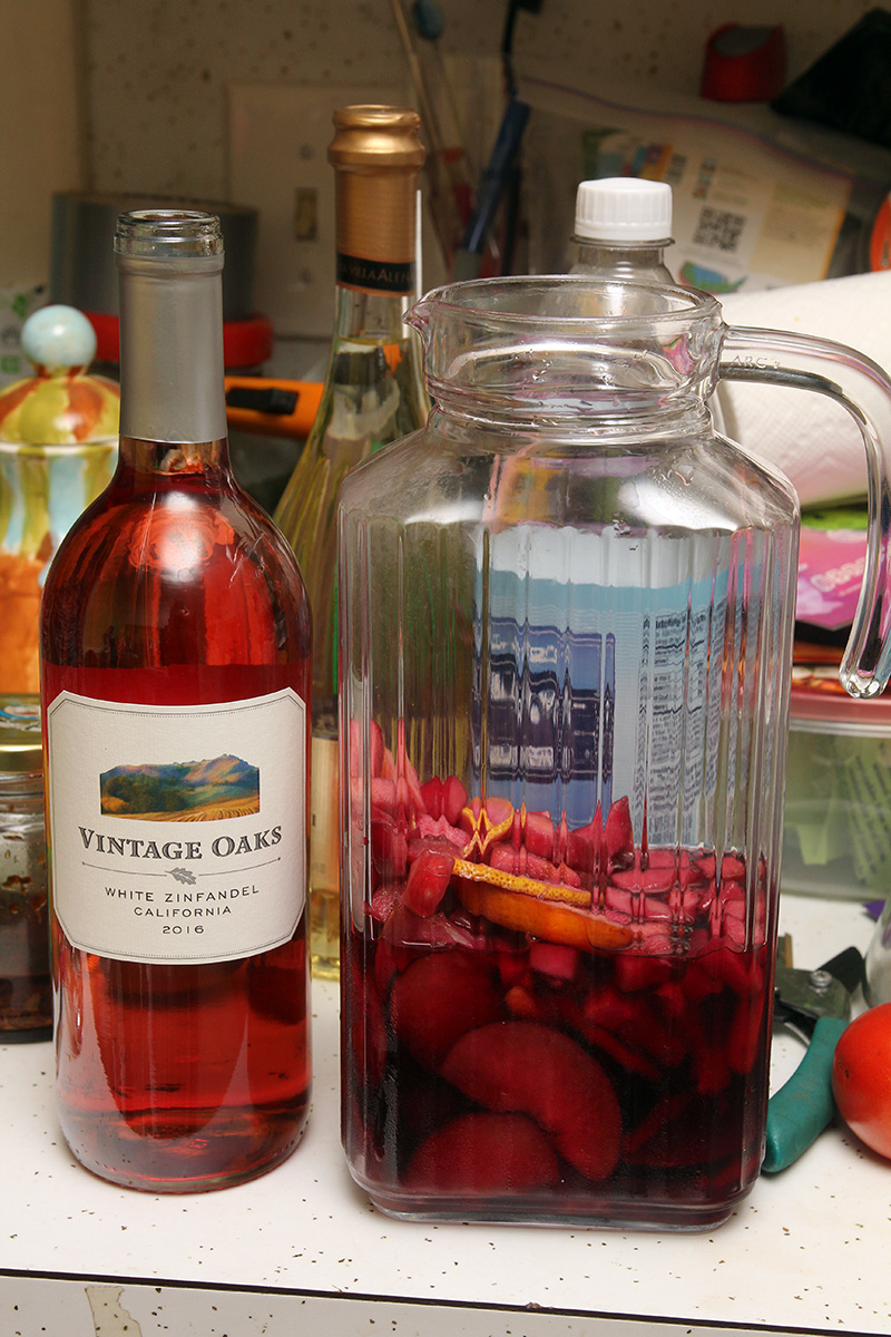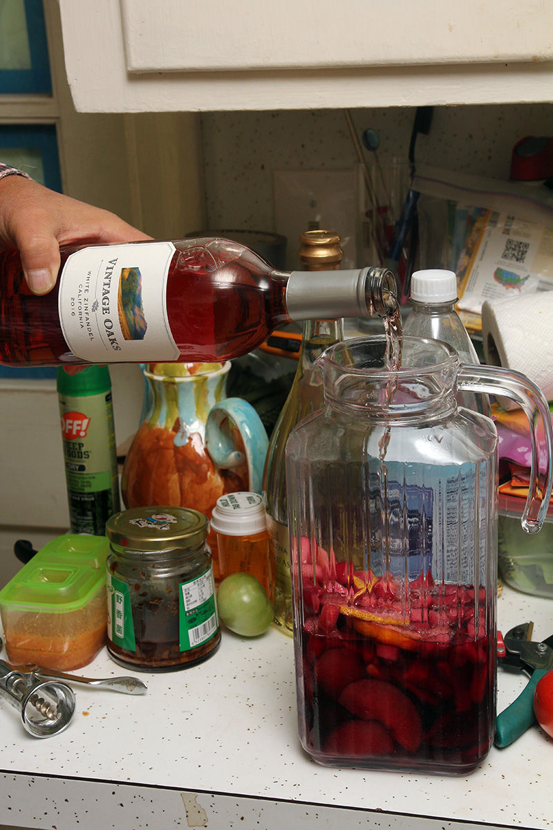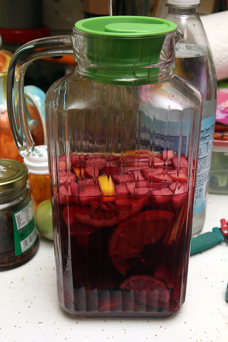 my parents bought a bottle of white zinfandel from OSJL which we poured into the sangria from yesterday. this new batch of zinfandel sangria tasted much better than sangria made with merlot, though it wasn't as sweet as much of the sugar had already been diluted. i only had a few sips, as i still had to ride home on the motorcycle after dinner. both my parents said it tasted much better now, more like the sangria we had at the brazilian restaurant.