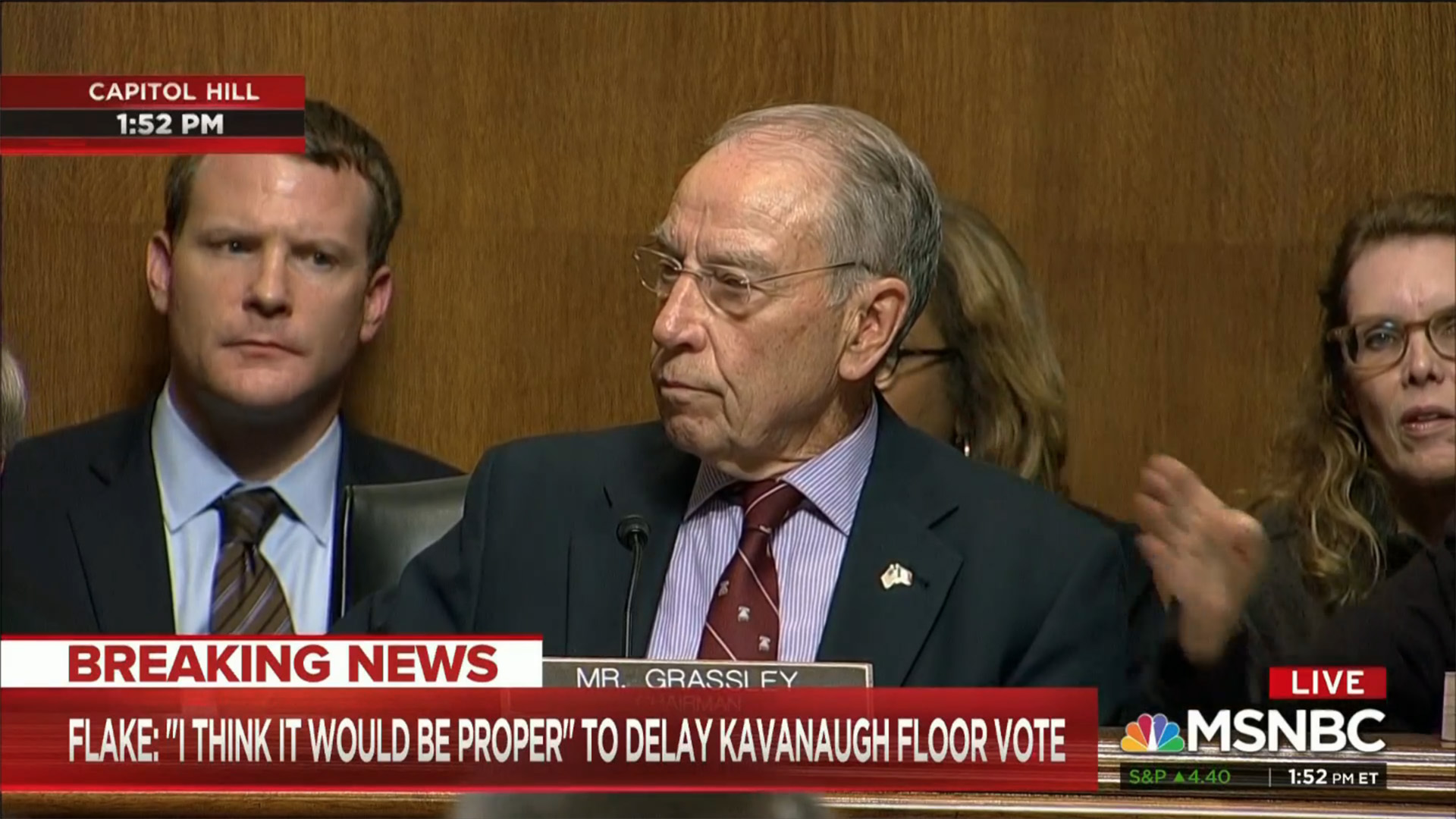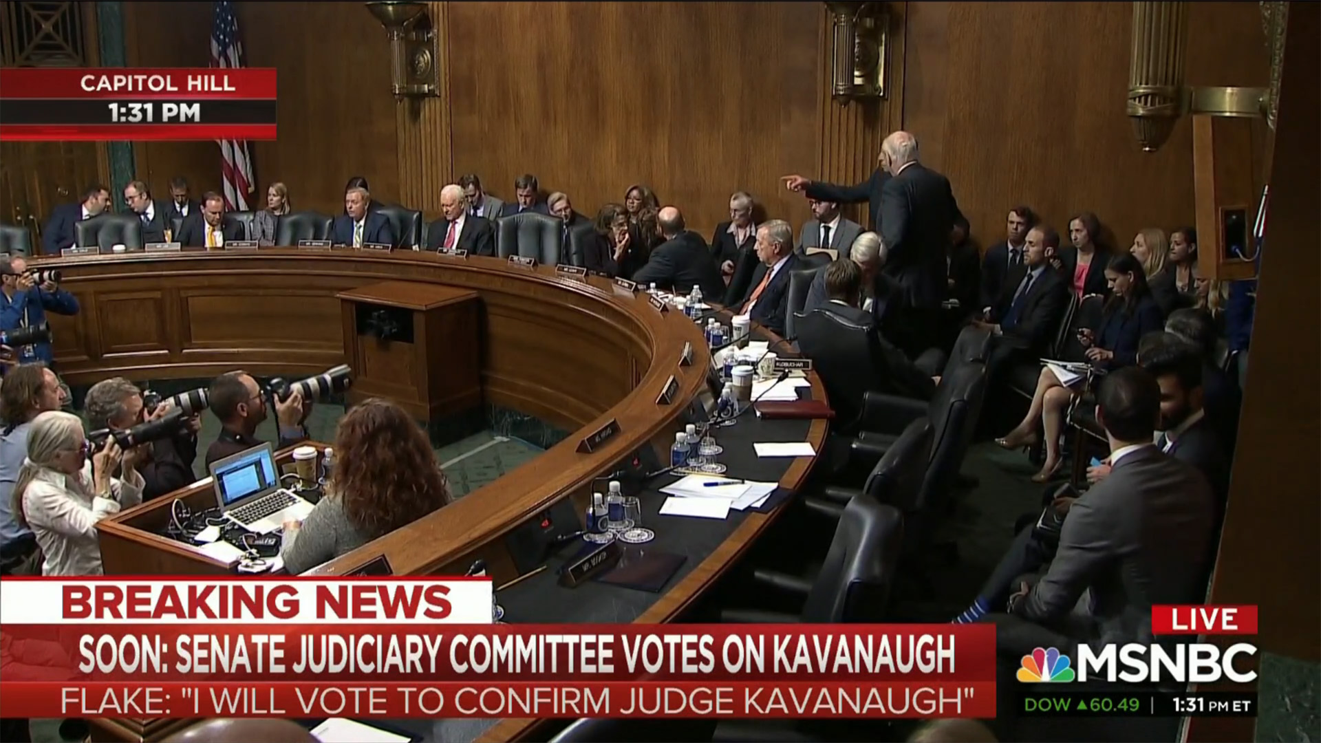 as 1:30pm drew near, i watched the coverage streaming from MSNBC signed in using my parents' verizon FIOS account. i snacked on some baby carrots. everything seemed normal until the democrats feverishly conferring with one another. senator grassley left at one point, then came back, then left, then came back again, along with senator flake. a few democrat senators were smiling. before the committee took their vote, flake was allowed to speak, and he said in order to get his support on the senate floor, he would like the FBI to have a week to look into the allegations of sexual assault in kavanaugh's past. without agreeing one way or another, senator grassley suddenly opened the vote. the democratic senators weren't even sure what was happening, particularly feinstein, who seemed confused as to what they were actually voting on. once the vote was complete (11-10 to allow the confirmation vote to proceed), grassley just as abruptly adjourned the committee (some obscure rule that committees have to close by 2pm on fridays). so what happened? it wasn't until later that there was confirmation that the kavanaugh vote would be suspended for one week to allow further FBI investigation. what political drama!