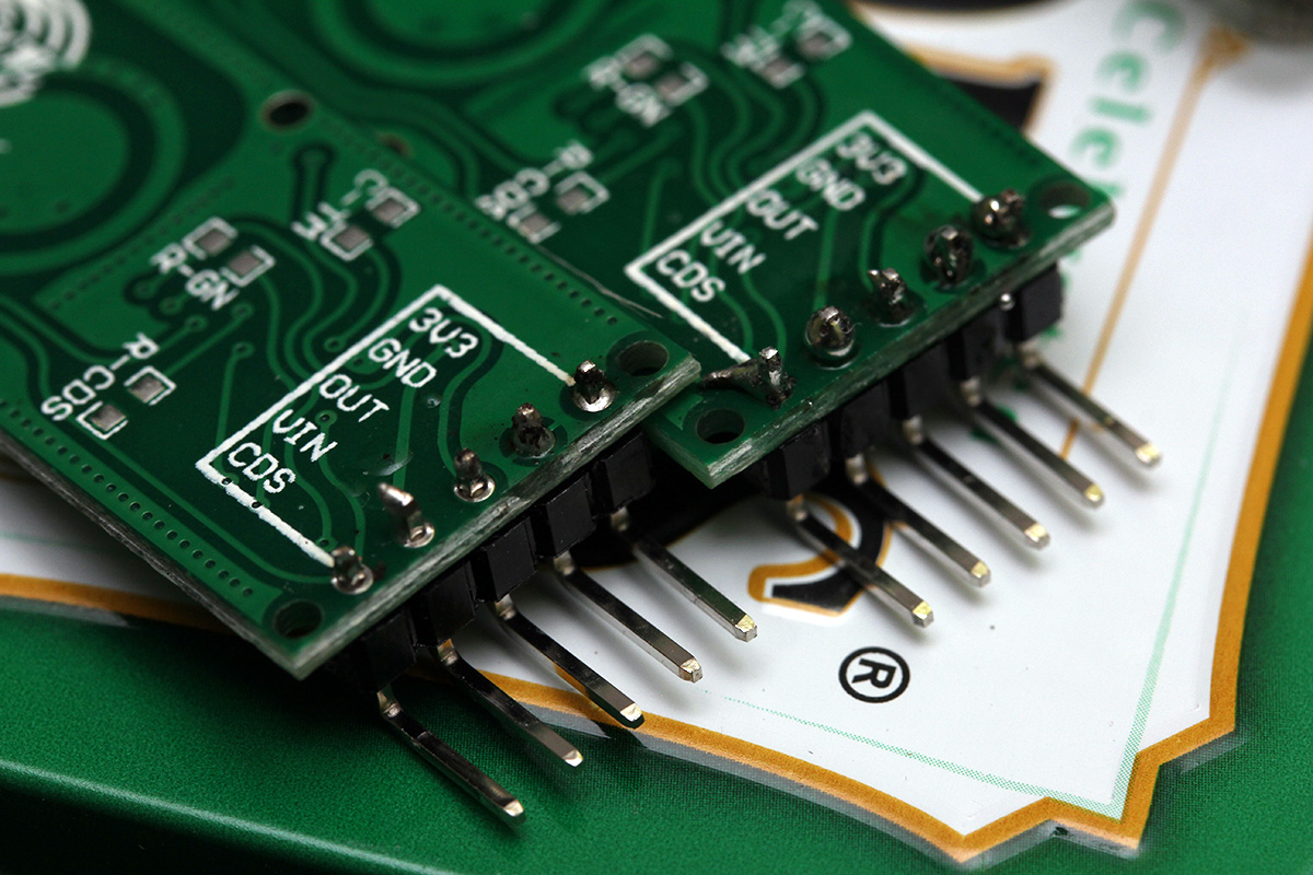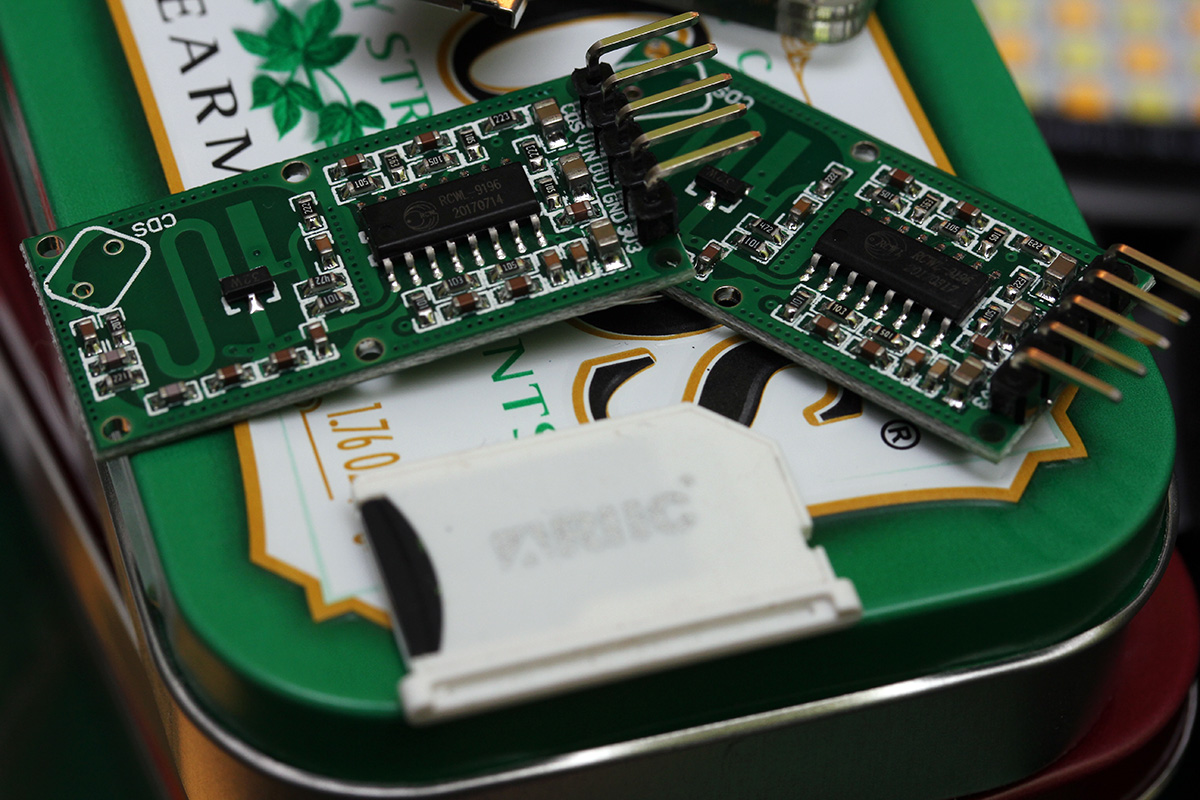 neither of us really knew what we were doing. my father solders but he's never soldered pins onto rings on a circuit board before. we practiced first on a pair of RCWL-0516 microwave radar sensors that needed 5 header pins attached to each. the solder kept globbing up and not detaching onto the pins. later through trial and error we discovered that we were holding the tip of the soldering iron (375°) and the solder itself too far up on the pin, when they should be closer to the base of the pin. we also moved the soldering iron away the moment the solder starting melting, which would solidify the solder, making it glob up instead of release onto the pin and into the ring.