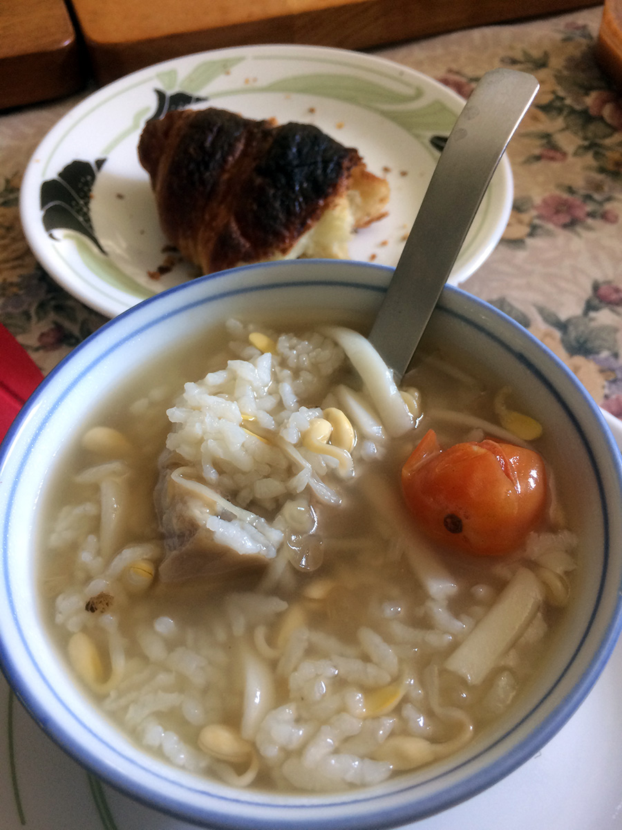 earlier for lunch i had some rice porridge in beef broth with bean sprouts along with a croissant. looking at the latest harbor freight catalog, i noticed that the discount price of the 100W solar panels had increased from $145 to $150. in fact, due to trump's tariffs, a lot of items in the most recent catalog had smaller discounts compared to the previous catalog. when my mother and sister came back from winchester, my mother brought back some pastries from the farmers market.