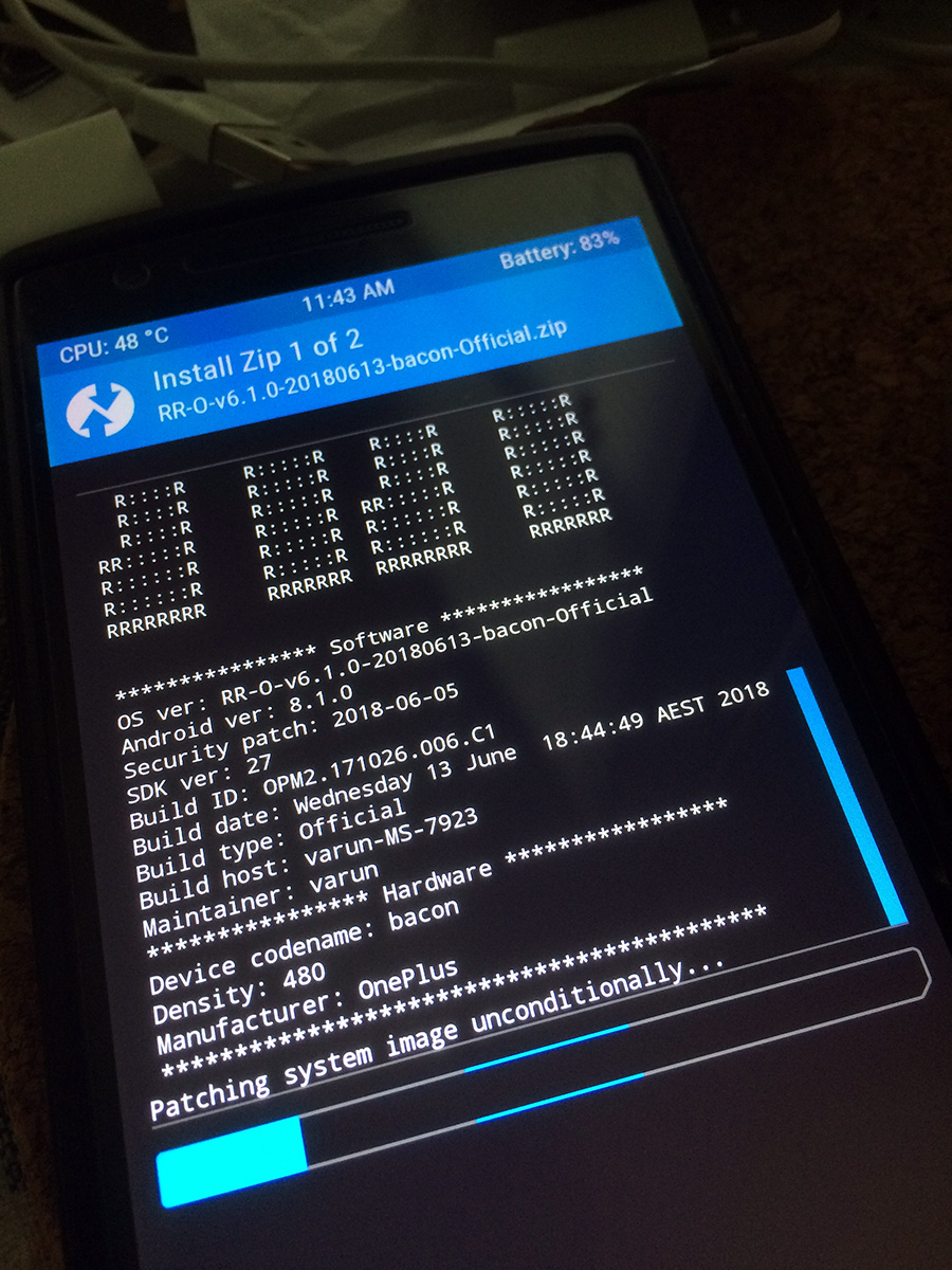 back at home i continued tweaking RR. it crashed on me twice, the first time the phone rebooting on its own, the second time the system froze and i fixed it by rebooting it manually. one thing i noticed under the security & privacy settings, when i hit the "trust" option, it said that SELinux wasn't enforced. i wasn't sure what that was, and there was no way of turning it on, although i do remember it was enforced in lineage. when i went to go turn on smart lock, it said i couldn't do it until i set a screen lock. however, once i set a screen lock (using a pattern), the phone suddenly froze. i rebooted it a few times but every time i passed the screen lock it would just freeze, wouldn't go to the desktop.