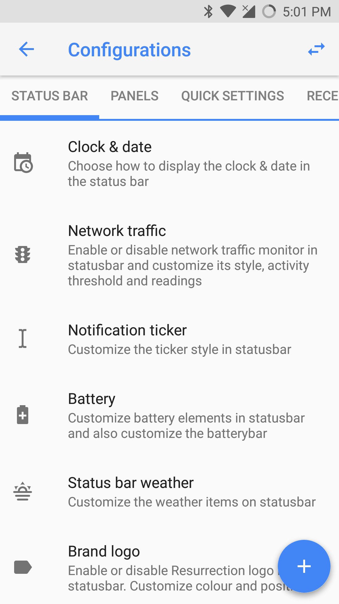 i rebooted after it finished installing. i waited anxiously for the boot animation to finish and drop me into the desktop. i was given the option of choosing between the google launcher, nova, or trebuchet. so resurrection remix (RR) doesn't have its own launcher? i picked trebuchet first, but when i saw that there was nothing special, and that customization was built into the system settings, i switched to the nova launcher. the system was downloading all the apps i used from the last cloud backup, which was about 80 apps. it took a while, partly because after the 8th app the installation got stuck which i fixed simply by rebooting once i realized 40 minutes later what had happened. while that was going on, i went into the RR configuration settings. talk about customization! seems like everything little thing in the system could be customized. i was interested in changing the battery status icon from a battery to a circle, to match cyanogen OS.