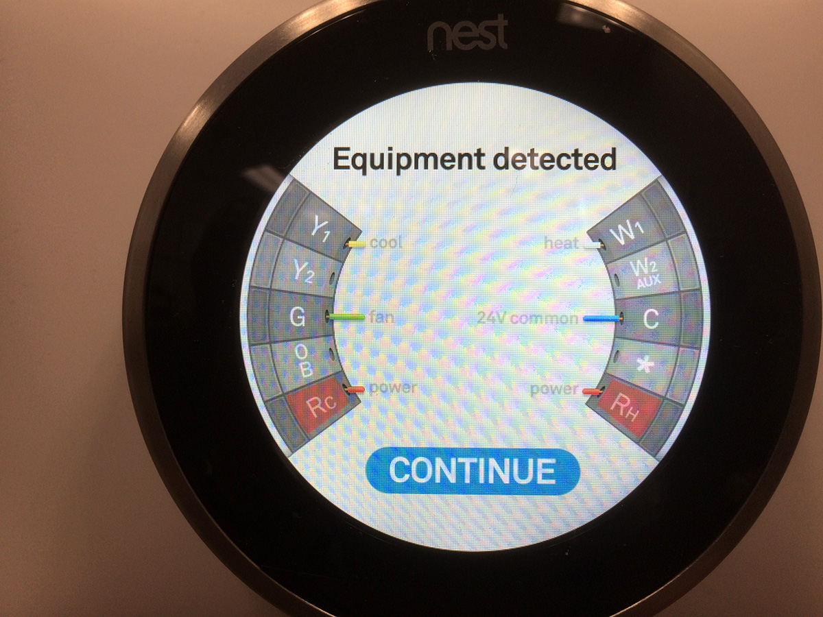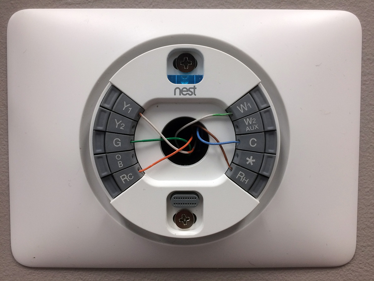 putting the woke nest back on the wall mount, it was able to go through the initial setup, but when it ran the wiring diagnostics, it said there was no Rc or Rh wires. that made no sense, so i tried to fix it by disconnecting wires. first, all the AC wires (Y, G, Rc), but that didn't do anything, it still said something was wrong, this time just the Rh since it couldn't see Rc. could it be the common wire? i disconnected the common and put started the nest, and this time it didn't give me any errors. i reconnected all the AC wires as well, the AC worked fine too. so the common wire was the culprit. but without a common, how can the thermostat charge itself? but the nest seemed to be very happy without a common, never once complained. we even saw it was recharging itself, so it was definitely getting power from somewhere, we just don't know where. we decided to left everything as is for the time being.