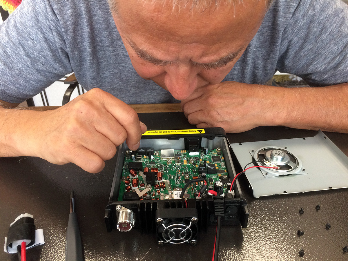 i rode the motorcycle to belmont around 1:40pm to look for some equipment, including a box of wiring nuts and a drilling spade. when i returned to the cafe we took a break so i could have some lunch. i brought my torx screw along with my father's fired TYT radio so he could open it up and see what was fried inside. there were a few suspicious spots, but everything everthing looked normal, no major damage. we could've also checked the other side of the circuit board but the amount of screws needed to be removed made it too much of a hassle.