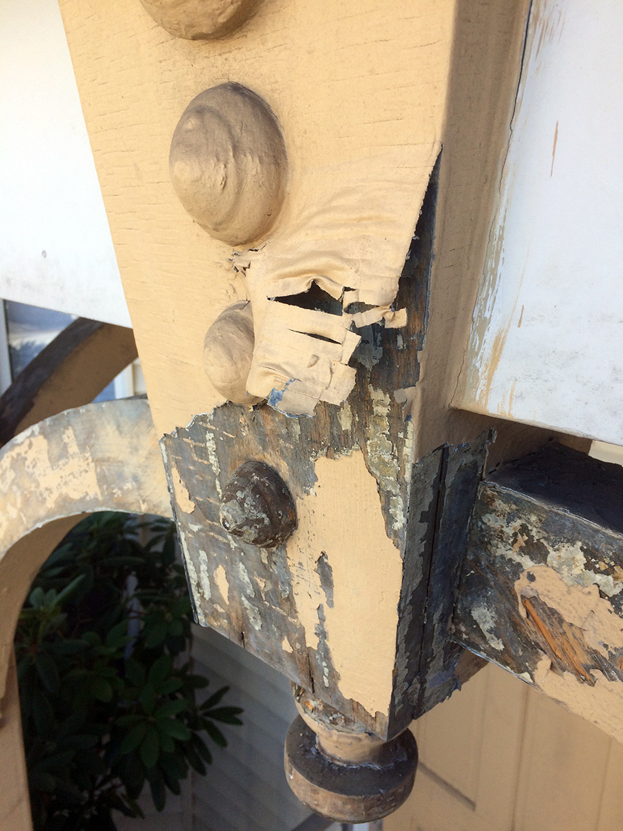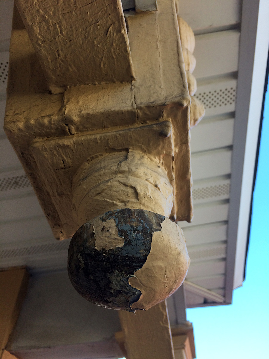 ideally, i would've stripped all the old paint from the porch before painting, but that would take a long time. i basically had to triage, only strip the areas that really needed like, like fat globs of dried paint. smaller blemishes i could probably sand down flat. so that's what i did. i worked the heat gun until i got tired then switched to the sander. the sander made quicker work, but all that dust worried me, especially lead particles. i had on a mask, but the dust gets everywhere, like in your hair, your eyes, and on your skin, so it's not the most healthy thing to do.