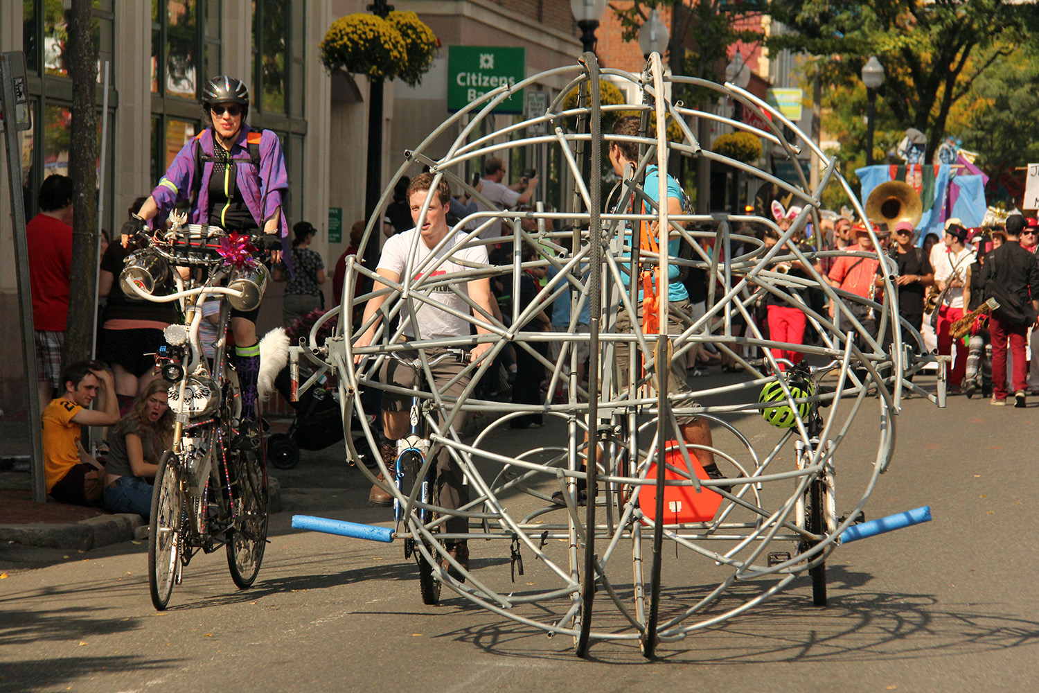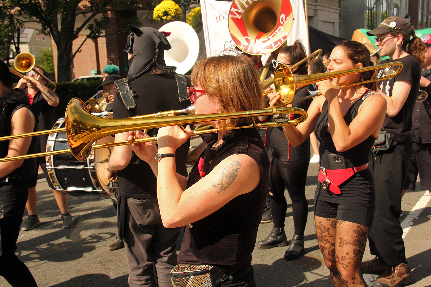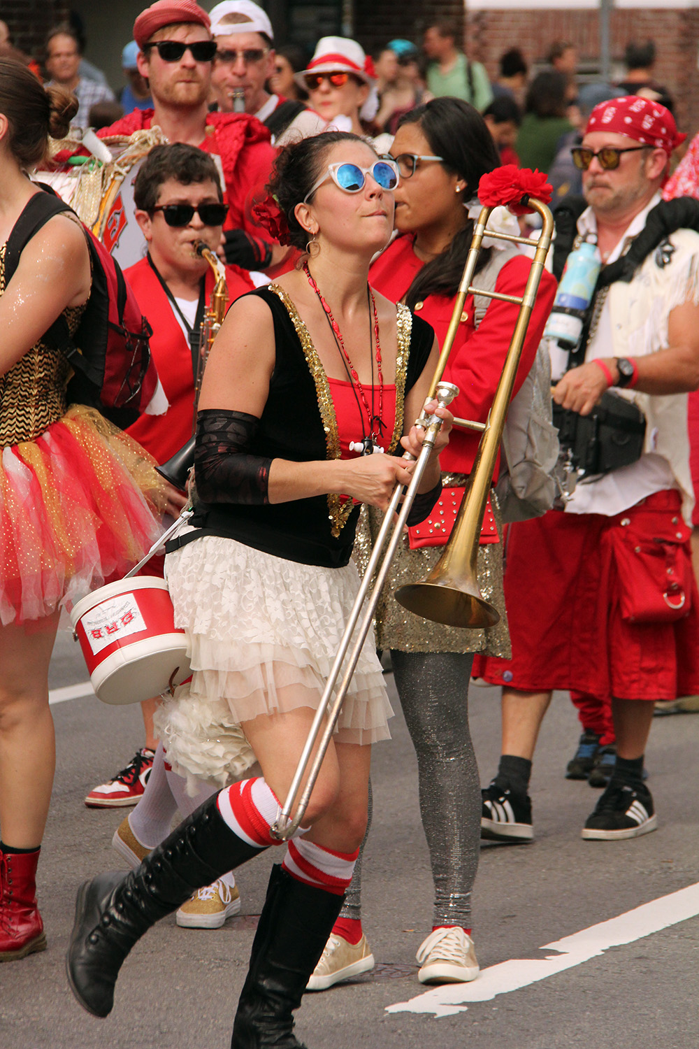 compared to some of the other parades i've gone to this year (pride, mermaid, carnival), the honk parade was somewhat more subdued in extravance and spectacle. maybe it's because i've already seen it so many times, it's lost some of its novelty. but it felt like there wasn't as many photoworthy moments as honk parades from years past.