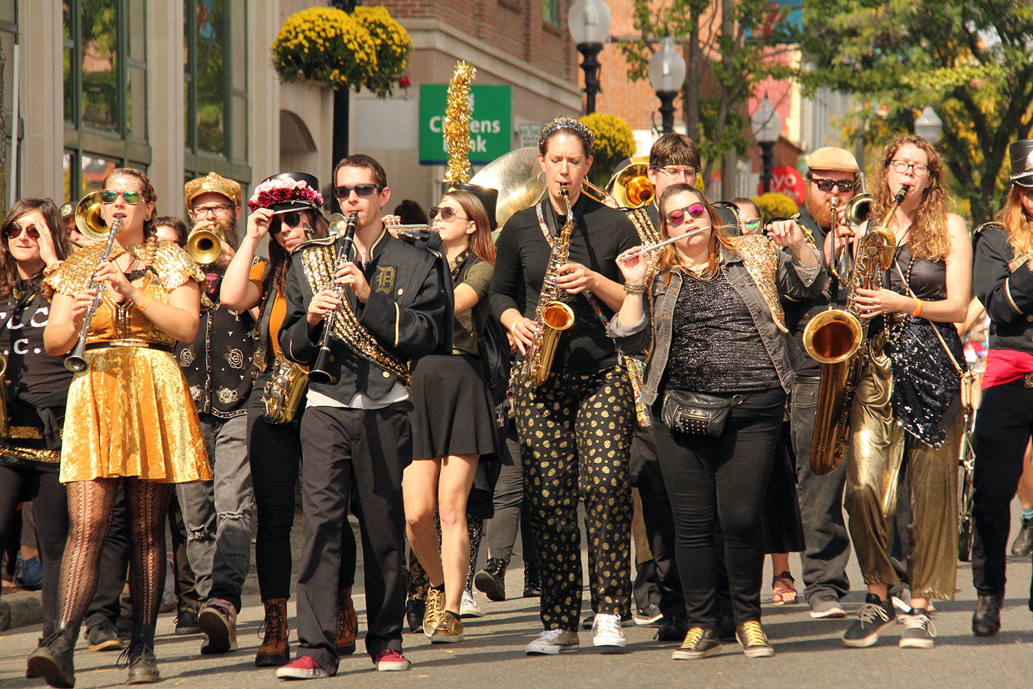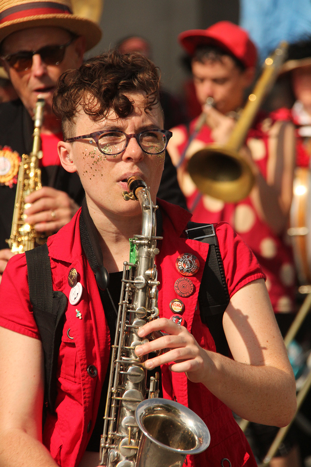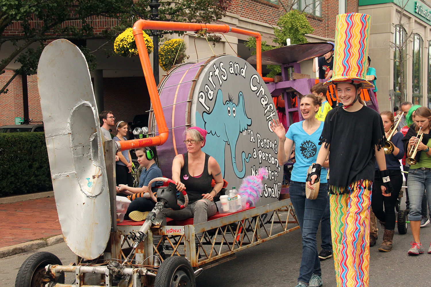 compared to some of the other parades i've gone to this year (pride, mermaid, carnival), the honk parade was somewhat more subdued in extravance and spectacle. maybe it's because i've already seen it so many times, it's lost some of its novelty. but it felt like there wasn't as many photoworthy moments as honk parades from years past.