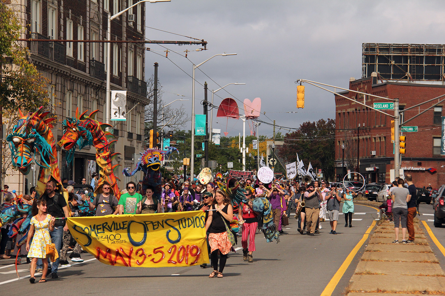 after stopping by the house to wash up and grab my camera gear, i walked down to the corner of mass ave and beech street (a bit past porter square), where i watched the parade last year. i got there earlier than i anticipated, and growing impatient, i decided to walk down to beech and elm to see if i could see the procession. i ended up walking as far as russell and elm, on the perimeter of davis square, and seeing the parade from there.