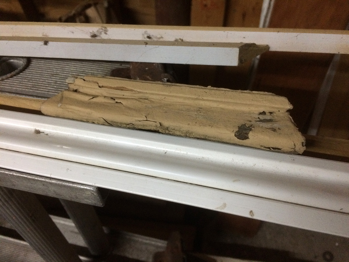 there's some molding strips in the cafe basement. one of them is about the same size but has a different pattern. i might use that, or buy some additional molding.