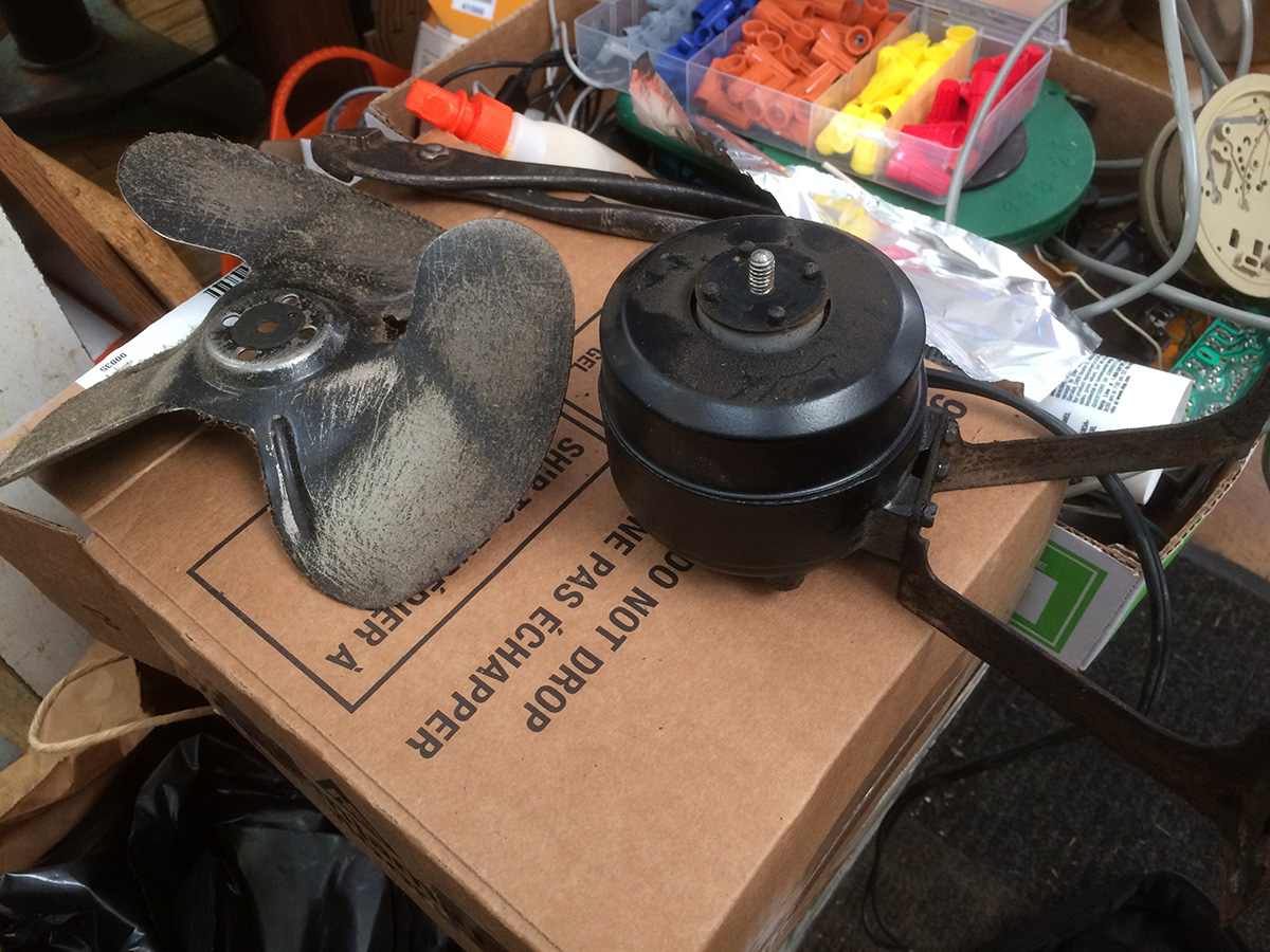 i also helped my father install a new exhaust fan at the back of the cafe. the one was making a loud noise, not worth trying to fix as the fan itself is coated in sticky black grease and he has a bunch of spare fans anyway (salvaged from old restaurant equipment like commercial freezers). we attached the fan to the cable cord using wire nuts and then my father screwed the fan to the wall by the window.