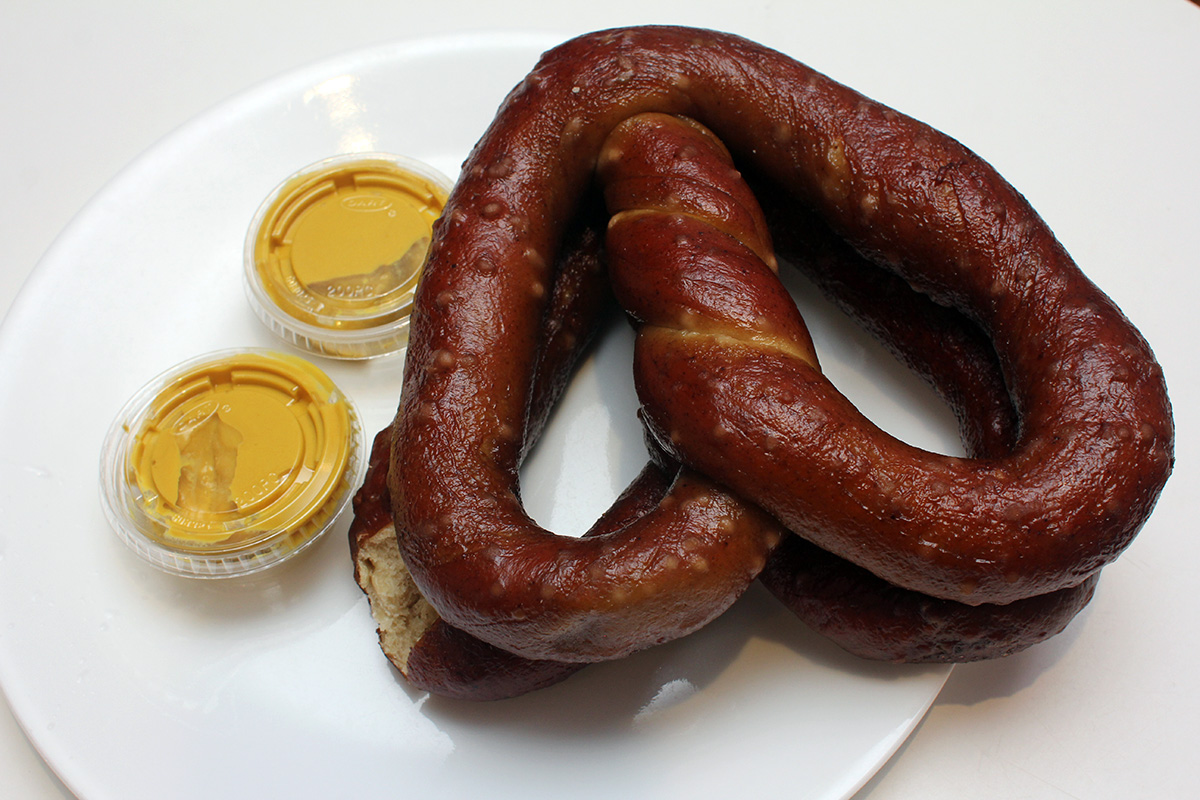 my sister dropped off a pair of soft pretzels in the afternoon. this time they came with mustard. until very recently, i've never enjoyed a soft pretzel before, and that goes without saying that i've never ate a pretzel with mustard before either. i tried it, i like it, but the mustard flavor was overwhelming, and i really like the taste of a plain salted soft pretzel, doesn't need anymore enhancing.