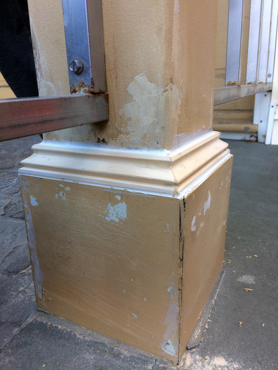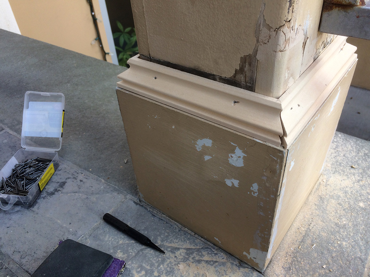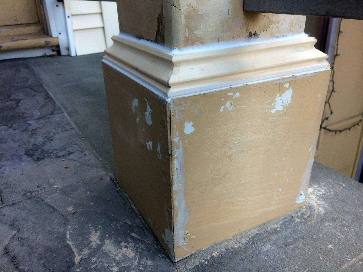back on the front porch, i sanded down the wood filling. i was happy to see that the corner gaps could be sanded down so they virtually disappeared. once painted, they'll look like i made perfect molding cuts. all this work for some little detail that very few people will notice, but let it not be said that i went i work on a project, i get close to near perfect as possible. once everything was sanded, it was finally time to caulk. i hate caulking because it's so messy but it's a necessary evil. i was afraid the caulk had dried (it's been 2 weeks since i opened the tube), but nothing i couldn't clear up with a bamboo skewer. the first few passes were ugly, but once i got the hang of it, the caulk strips looked pretty good. i don't expect to paint tomorrow; just an inspection and patch up any details i might've missed. i'll finally begin painting next week, when we have several consecutive days of dry warmish weather.