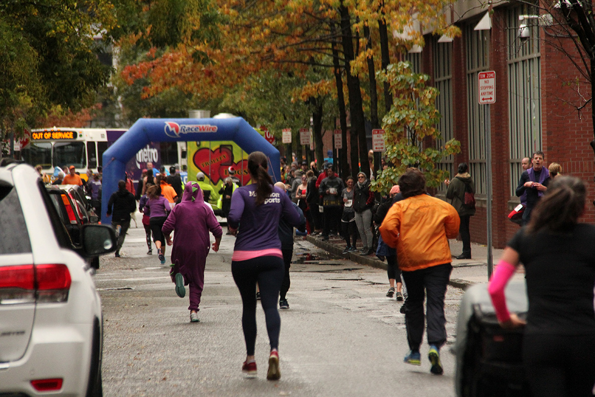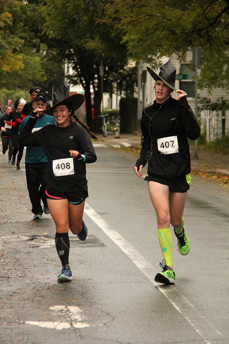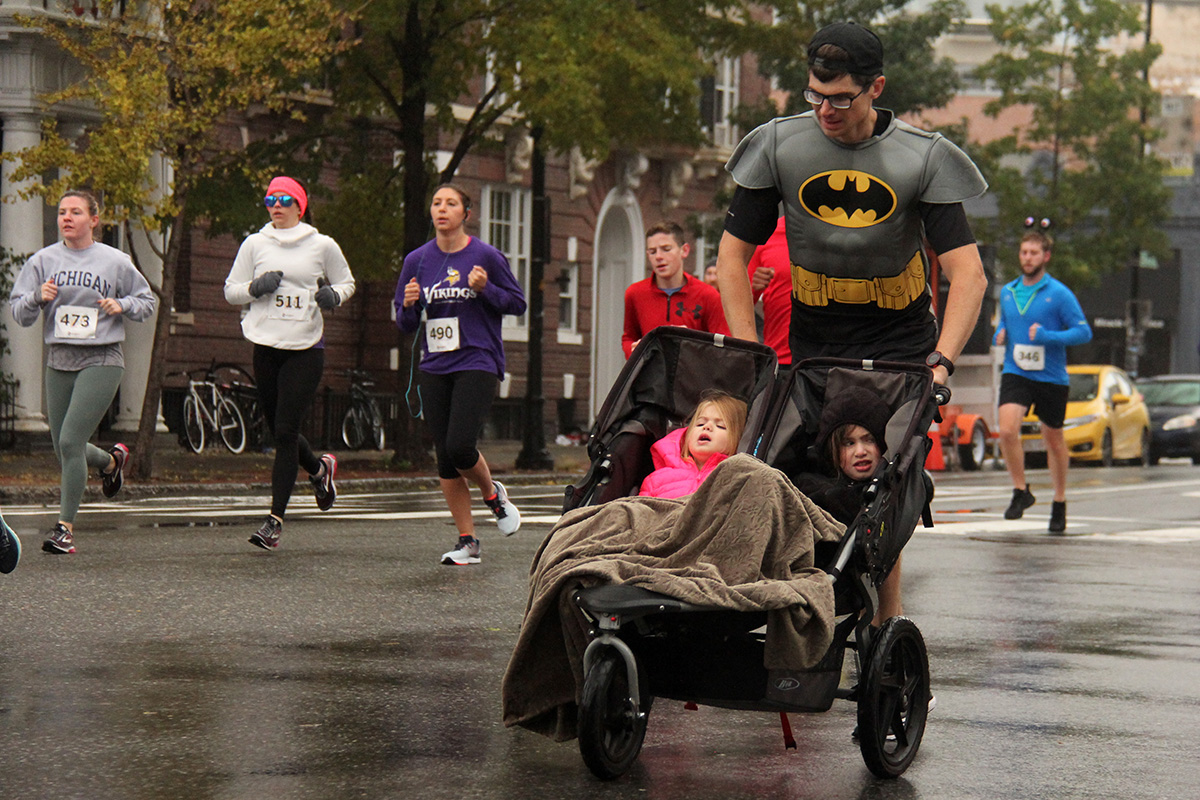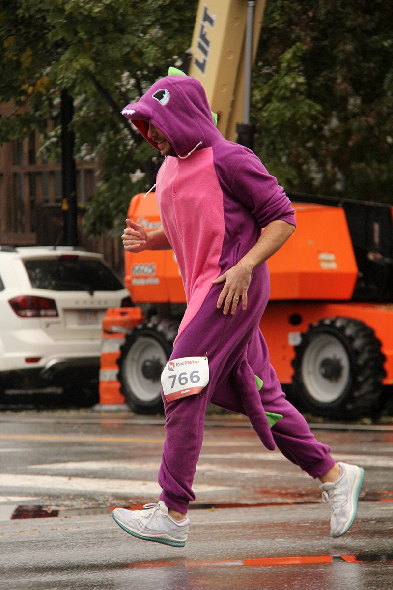 the cambridge superhero 5k was the original costumed halloween run. however, in recent years, the newly created boston costume run has pilfered a lot of former clientele, and now the superhero run seems to be a shell of its former self. maybe as a way to revitalize itself, the run has been rebranded as the monster dash 5k. most likely due to the rain, many runners weren't even in costumes, and there seems to be less runners than in past.