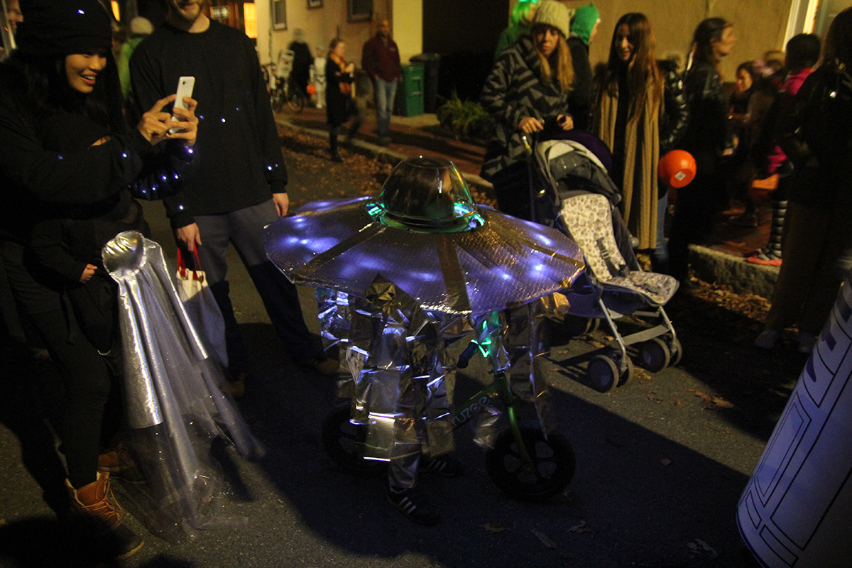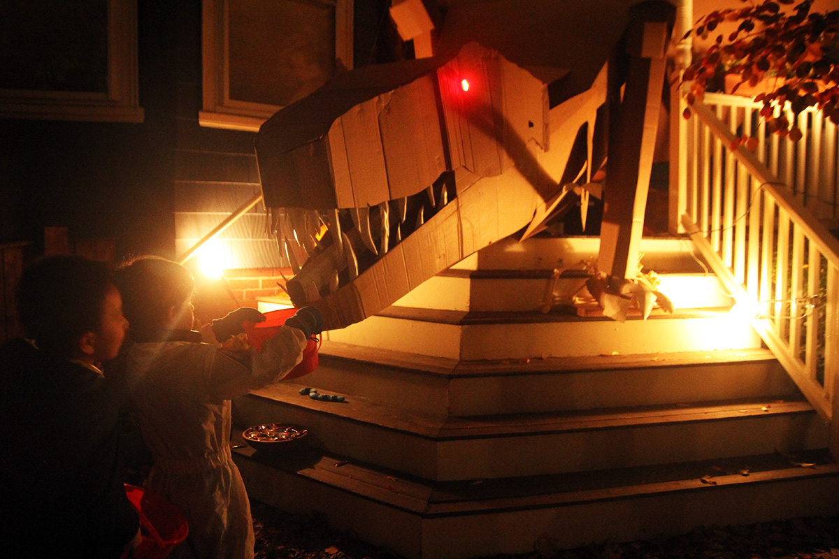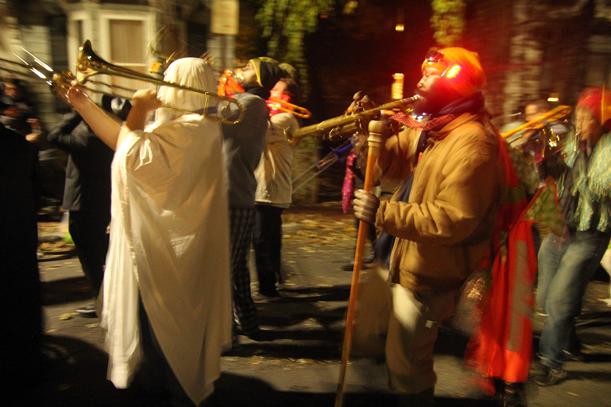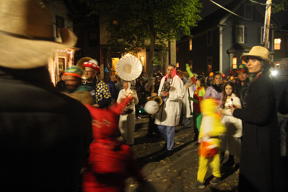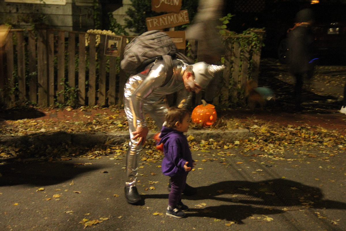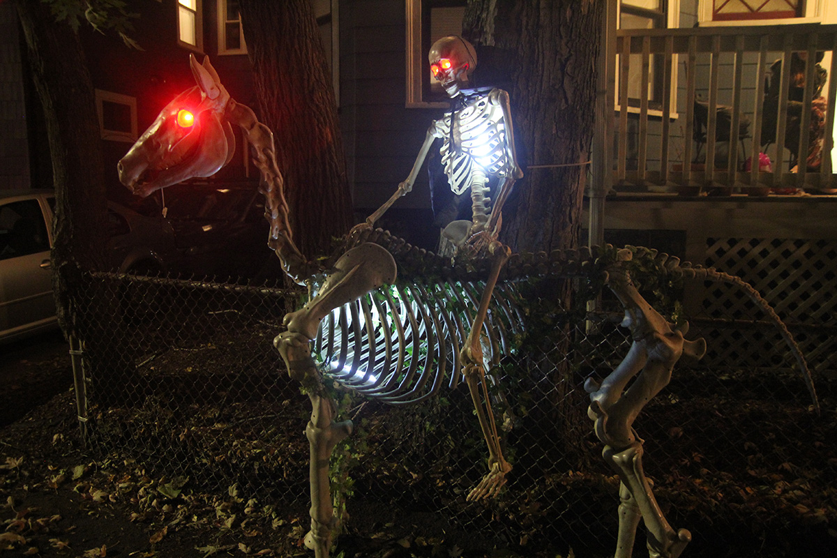 this year's halloween theme on crescent street was western related. we arrived right when the honk band showed up, playing their instruments up and down the street before leaving. i was a little disappointed that nobody came knocking on my door, even though i turned off the porch light. there's always that one group - usually teenagers - that adhere to well established halloween signals and ring every single house anyway. i did have candy, but i guess it'll all to go my personal collection (kit kat with glow-in-the-dark wrappers). i saw my upstairs neighbors had turned on their porch light, but because their doorbell was broken, they left a bowl of candy on the stoop. the bowl was of course empty.