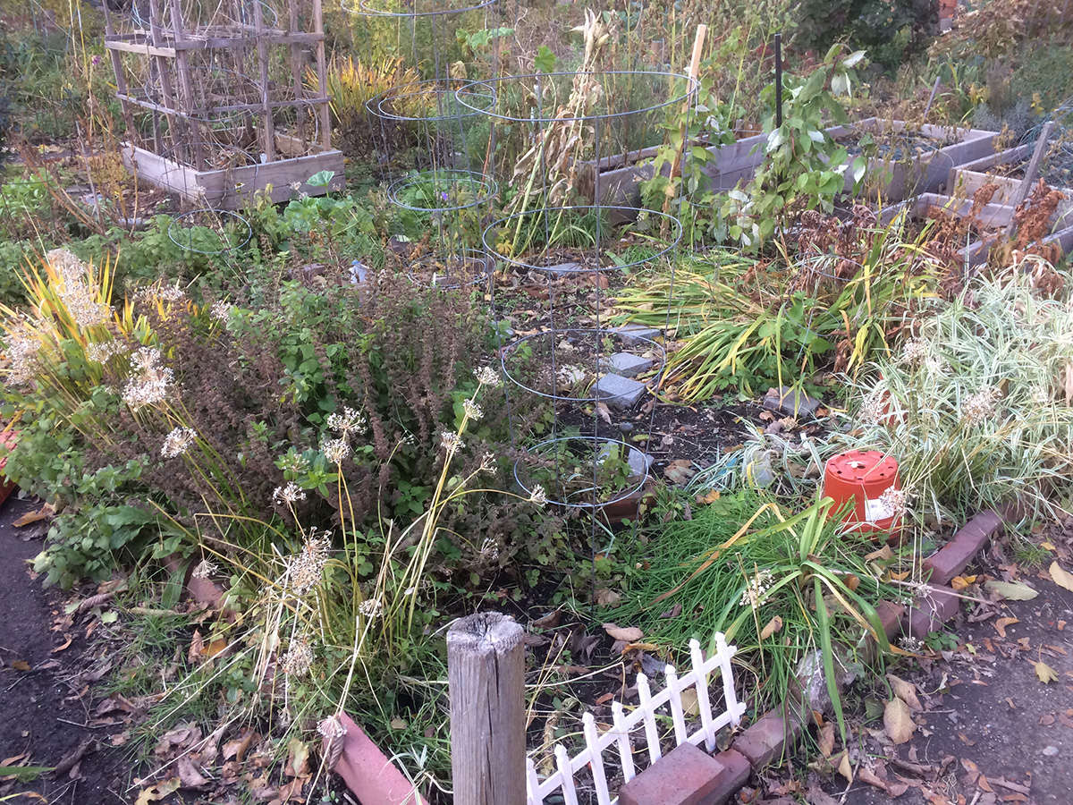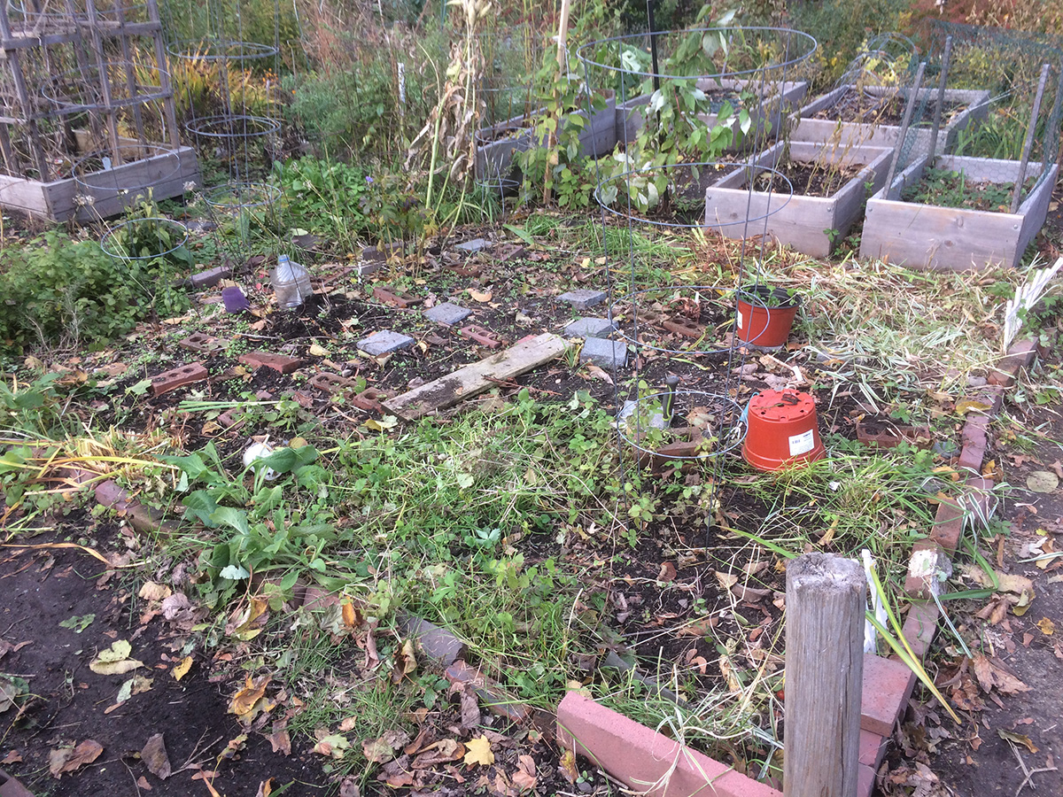 i returned home by 4pm, but went to the community garden to do a quick clean up of my plot, where i basically cut down and threw out anything that was still standing. i was the only person in the garden, but at one point a woman dressed like a pirate surprised me; she was in the garden for several minutes taking a selfie of herself. only then - around 4:40pm - was i finally able to come home and relax.