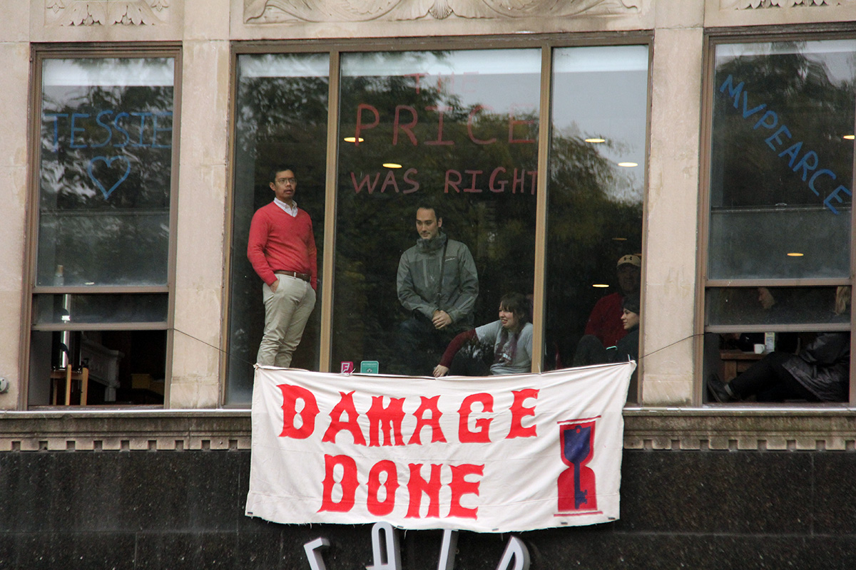 i would get there by bicycle, to avoid the crowded trains. i was expecting it to be warmer but temperature was at 37°F. normally when the weather drops below 40° i put on my thermal underwear but since i'd be biking and getting warm, i opted to go without. besides, the forecast said the temperature would increase into the upper 50's, however that's by this afternoon, long after the rally has finished.