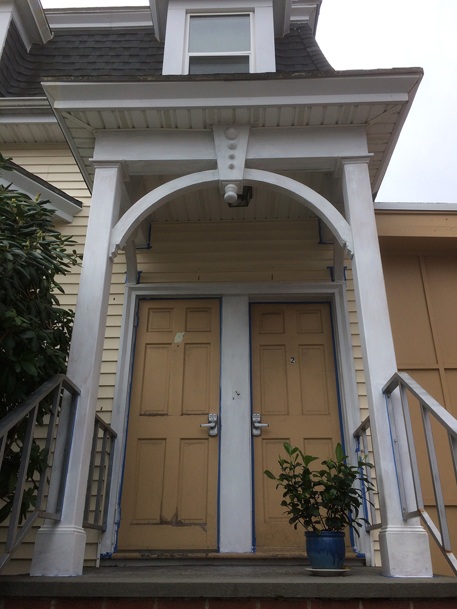 i returned to the cafe to drop off the groceries. i could hear the furnace in the basement making periodic clicking sounds as the nest thermostat attempted to sip electricity. when my parents get back in about another week we're going to need to fix this (i.e. installing a common wire) because over time it's going to ruin the furnace. i went to my sister's place and checked out the prime condition from yesterday, everything looked good and dry, although the bulk of the rain won't come until this evening, so that's the real test. i'm hoping to put down the 2nd and final coat of paint wednesday morning. i still won't be done though, i still have the doors to paint, which should be easier but involves leaving the doors opened for the paint to dry when the temperature will be getting colder next week.
