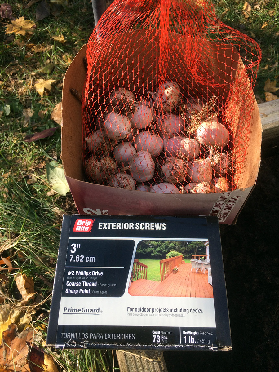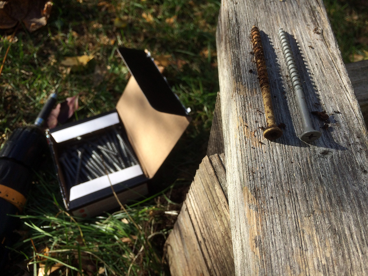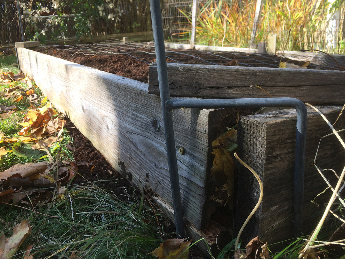 i read you can plant the smaller garlic cloves in tight rows for some spring onions. all the raised beds are occupied except for RB4. RB4 is not the ideal candidate because during the winter and spring it gets the least amount of sunlight, but it's the only available bed i can use to make a new garlic patch. but before i could do that i needed to repair the wooden box as it was falling apart. my original idea was to put new corner posts and nail the planks to that, but that was before i realized there were already long screws in the corners and they couldn't be removed because i didn't have the right star bit (T-20). so i ended up just nailing the planks to each other, before some of them started crumbling. now i'm hoping to find the right bit so i can remove the old screws and put in new ones.