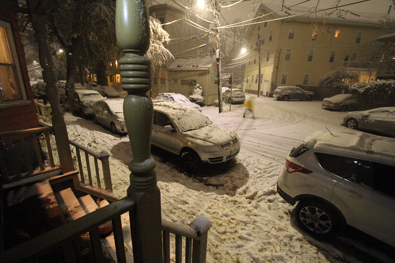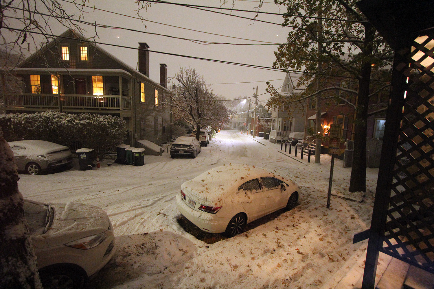 it ended up not snowing all that much here in cambridge. by the time i went to bed, it'd already transitioned to rain, turning everything into slush. i was more concerned about the new layer of locust leaves on the sidewalk after i just cleaned it up this morning.