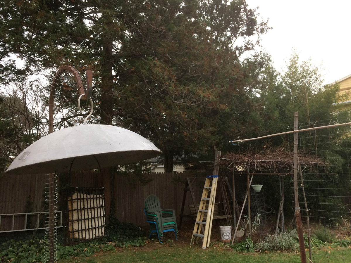 i went out into the backyard to do some yard work. the highway department still hadn't picked up the yard waste yet. i even had to call them just to make sure they were coming. the woman on the phone told me they're running on a delayed schedule due to the holiday, but also because they were running behind. they finally by around 4pm. in the meantime, whatever yard waste i collected i still had time to bring out to the curb for disposal. i ended up collecting a bin full of raspberry canes. i also put up the suet feeder. my sister stopped by briefly to let hailey go to the bathroom in the backyard before taking her for a walk around fresh pond.