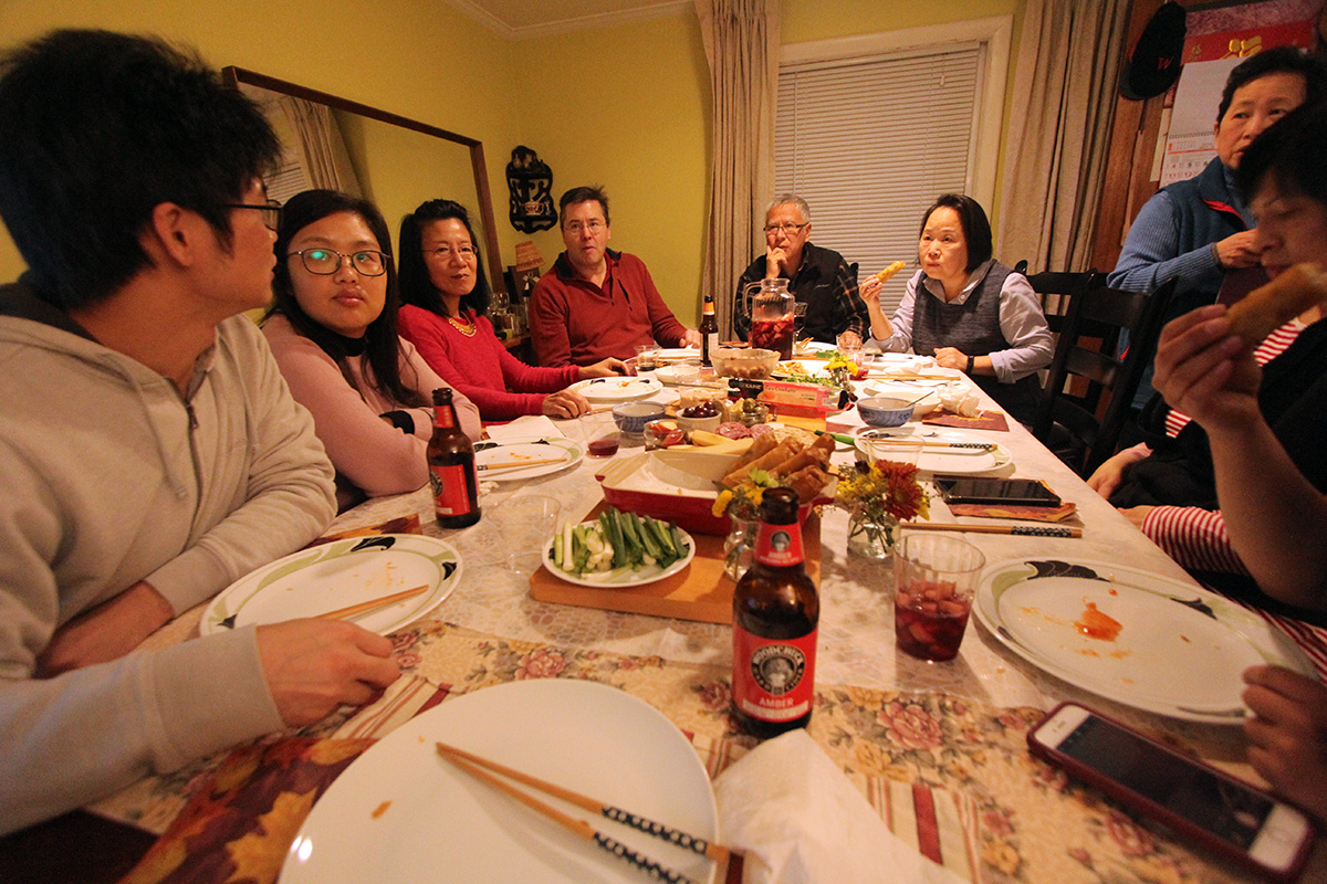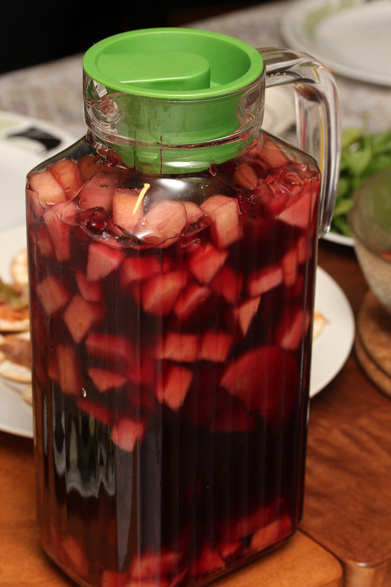 li of course knew most of us (except for my aunt and uncle), but we were all strangers to his wife. i was glad to see she wasn't afraid to try some of the different foods, including the cheese and sangria (maybe because she's spent some years in europe).