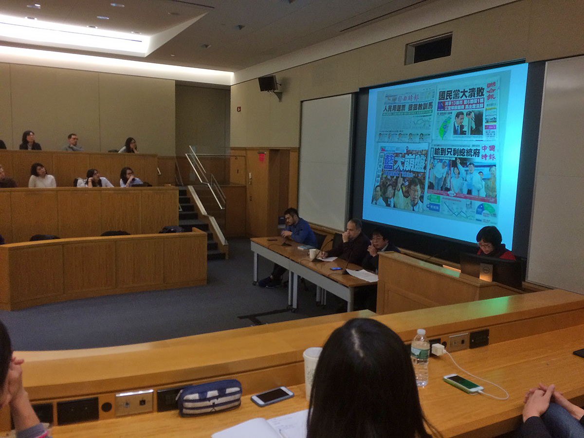 besides the two announced speakers (both visiting scholars at harvard), there was a third speaker, a young graduate student who recently returned to school after helping out with election campaigns in kaohsiung.