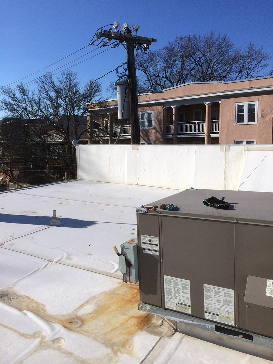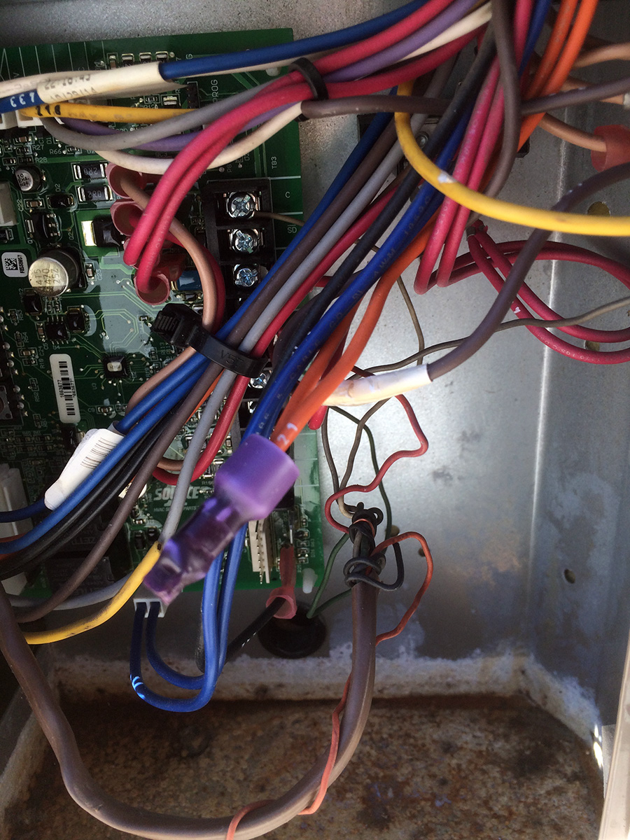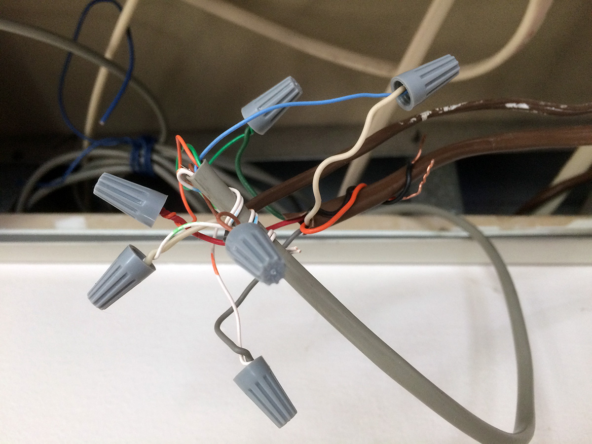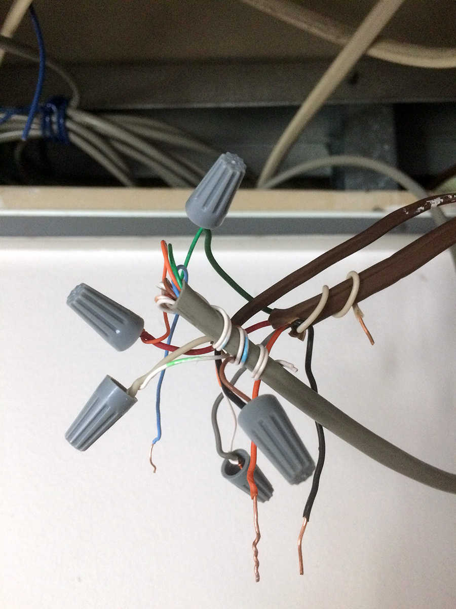 that the common wire was only 18VAC when it should be 24VAC. using a multimeter, i pulled off the nest thermostat and measured the voltage across certain wires. across Y1 and Rc it was 24-25VAC, and likewise between W1 and Rh. but when i measured Rc to C (common), it was 18VAC, just like my father said. i then climbed a ladder and checked the voltage across the cable splices in the ceiling, between the wires from the thermostat to the wires from both roof AC and basement furnace. the readings were the same as before, which meant the problem was further up the electric food chain.