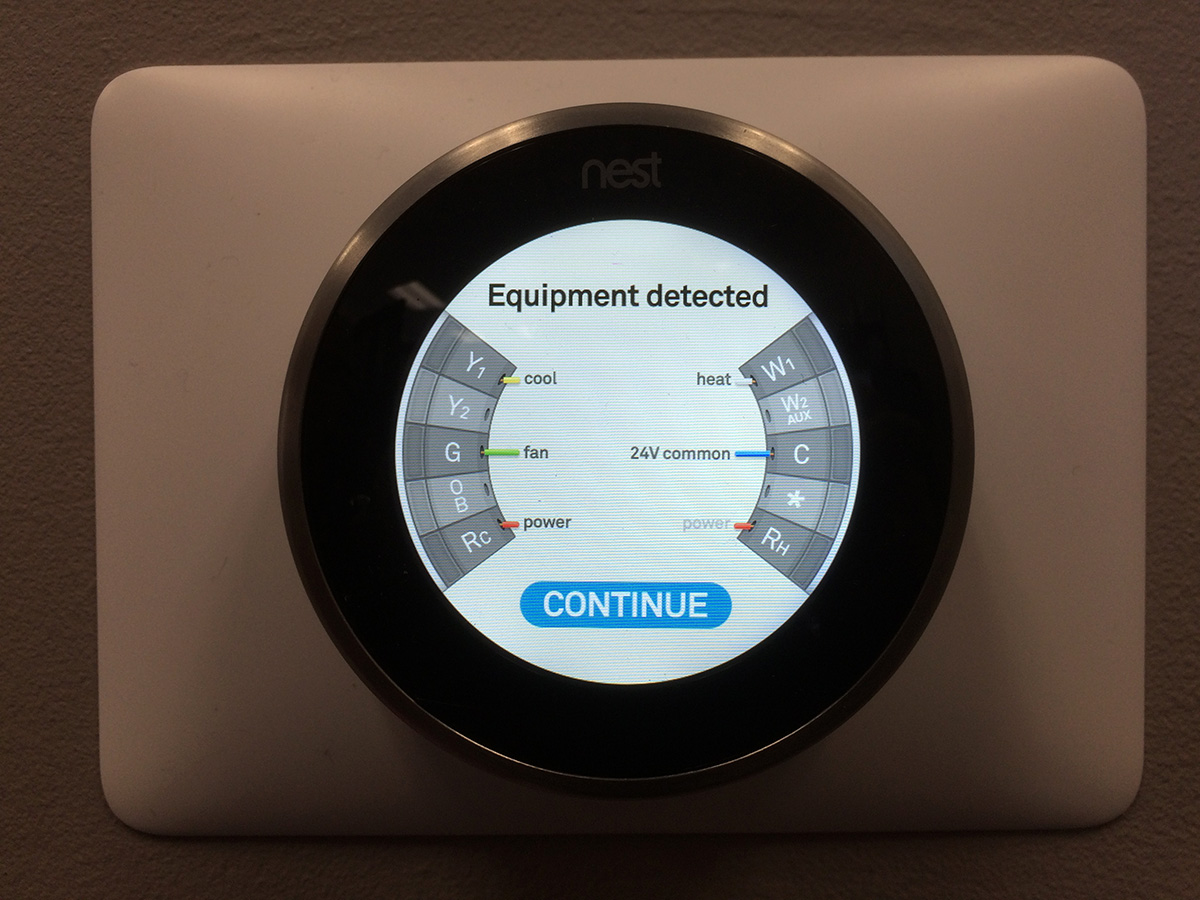 i took a new reading between Rc and C: 24-25 VAC! just what we wanted. anxiously i put the nest thermostat back onto the wallplate and waited to see what would happen. good news and bad news. good news: the wiring diagram now recognized the C. success! bad news: it was clicking the basement furnace non-stop, to the point where we had to turn it off. the only way to keep it from clicking was to ironically remove the C wire. it'd still click, but at least it could ignite the furnace, which it couldn't do with the common wire in place. it should've worked! but it didn't. and i couldn't think of a reason why. all the voltages were correct, yet it still didn't work. this was something only the HVAC guy could solve, and he was out on holiday vacation on the west coast, wouldn't be back until after christmas.