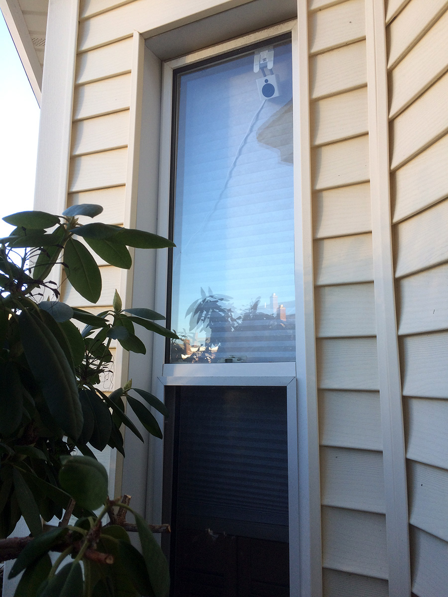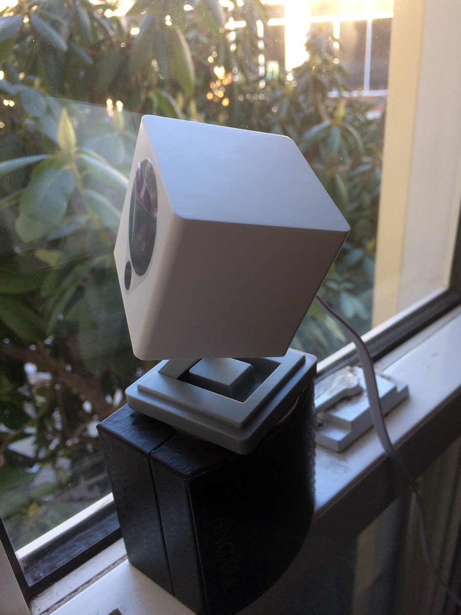 i spent the next hour setting up my sister's wyze cameras. the $20 stationary wyze cam i ordered arrived today; i'm replacing her front door pan cam with this one since she doesn't need the pan function. but first i set up a pan cam facing into the backyard. ideally we'd set it outside so we can use the night cam (using it indoors behind the glass window causes glare and you can't see anything in night mode), but there was no good place for use to put the camera. we finally rigged something up with a wooden plank on a shelf for the camera to stand on. next i replaced the front door cam with the stationary wyze. it has a unique design, like a desk lamp, but articulate enough to molded into any angle. it has a magnetic base and it came with a metal disc that can be glued to the wall to allow the camera to attach anywhere. i tried gluing the disc to the bottom of the window frame but the numerous ridges there did allow me to glue the disc completely flat. so i ended up just gluing the camera base to the window itself using sticky tape, which seemed to do the work. i also have a 3rd pan cam for a window on the side of the house but we need to wait until i can get a longer usb extension cord.