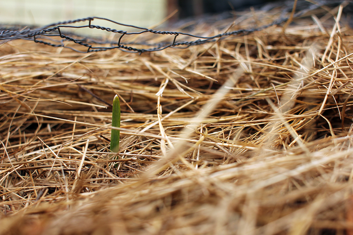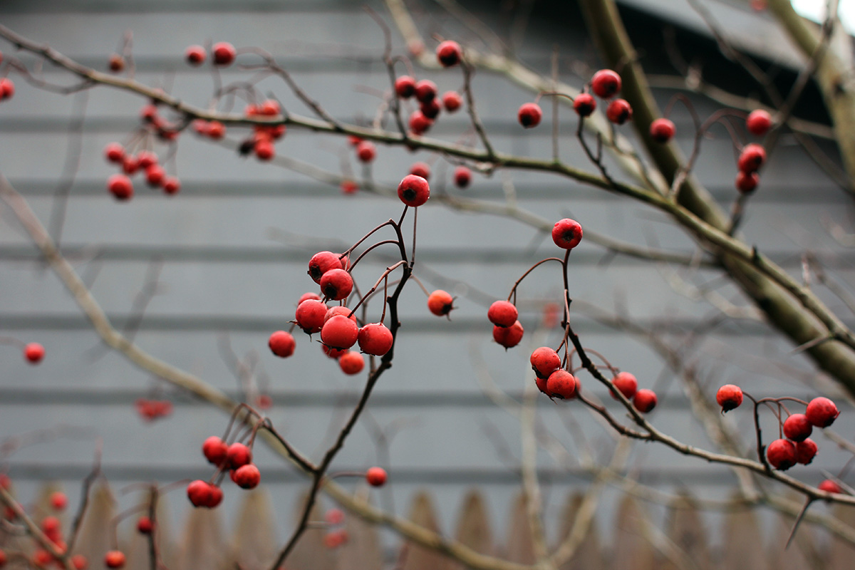 in the backyard i collected some fallen hawthorn berries for future sichuan paocai spice mixes. i noticed a garlic sprout in one of my garlic boxes. mild weather causes them to germinate but they will stop growing once it gets cold again. for best results, i should cover up the sprouts to protect them from freezing. elsewhere, my sister and i found 2 rabbit holes by the fences. i used planks of wood and rocks to block them up. rabbits just love coming into our backyard to feed on the plants. now that everything is dormant, it's easier to spot rabbit holes, though i haven't seen any rabbits in the backyard for a while now.