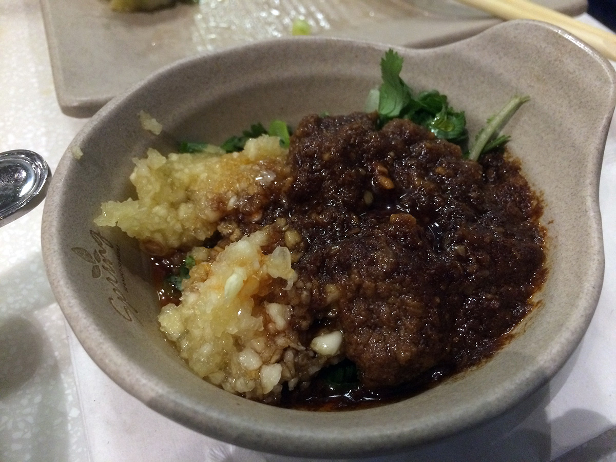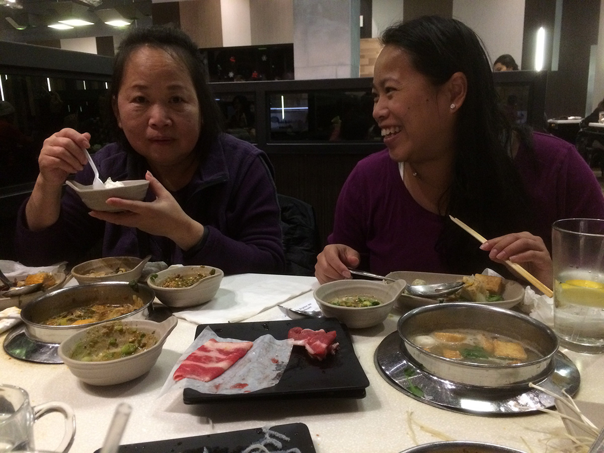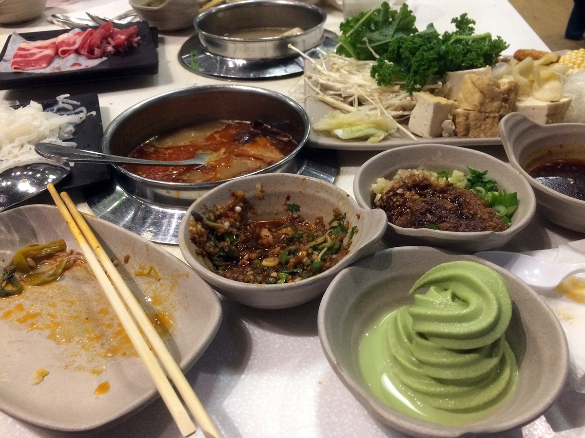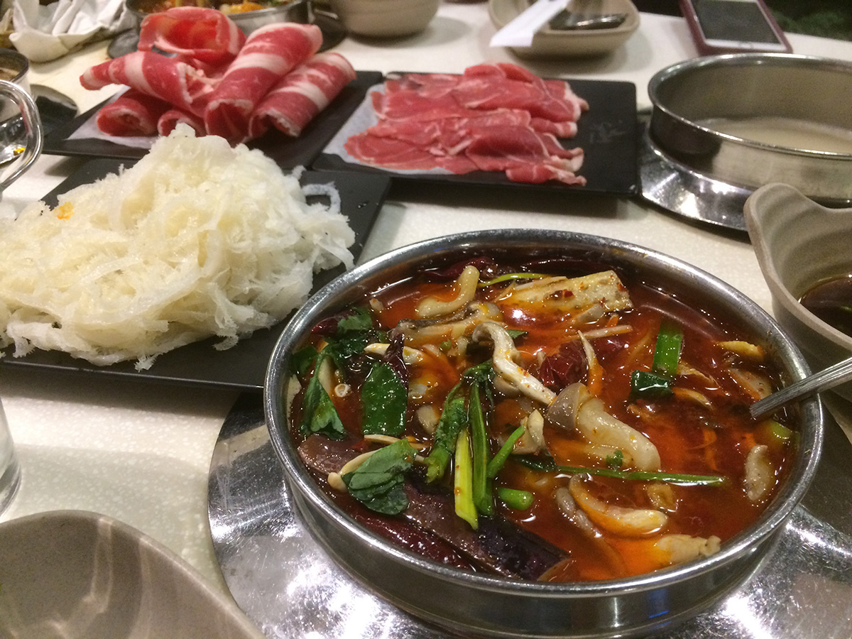 this being our second time in three days, we were seasoned pros at the art of shabu shabu buffet. we decided to get a table closer to the buffet counters, away from the far end of the restaurant where it was colder. they ended up giving us a table along a busy walkway, what we made up for in convenience we lost in privacy. our greeter was the same girl who was our waitress 2 nights ago, but she didn't seem to recognize us. i noticed when my father went to the food counters he was stocking up on tofu. i took an ice cream break in between plates of food. i didn't take any noodles this time, but like my father i too love the tofu, though not as much as he does. i took some frozen korean rice cakes and these crunchy gluten nuggets. i also didn't take too much leafy vegetables but did stock up on the different mushrooms. i ate until i couldn't eat anymore.