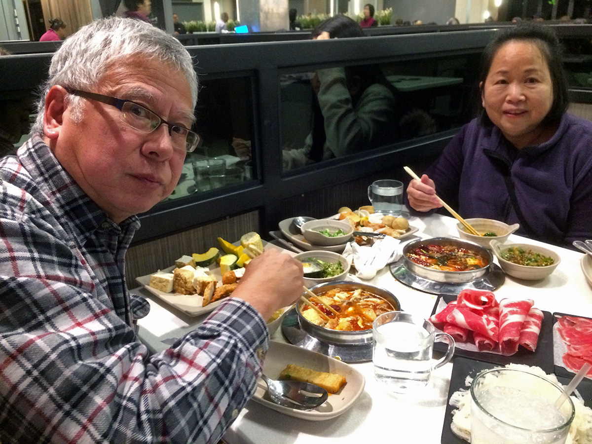 sandy and kelvin arrived wit several suitcases. in anticipation of our new england weather, both of them were sporting puffy jackets. sandy was a small friendly young woman while kelvin was a big guy with a haircut that reminded me of a korean kpop singer. when they first came in they were wondering if they should take their shoes off but decided to do so anyway. i spoke with them in mandarin chinese but i noticed only sandy was responding. later i asked them, and kelvin said he could understand mandarin but can't speak it, so i switched to english. both of them had british accents, sandy's tinged with cantonese, kelvin speaking like a UK native.