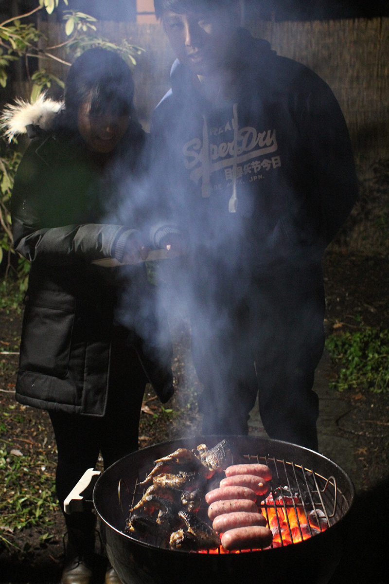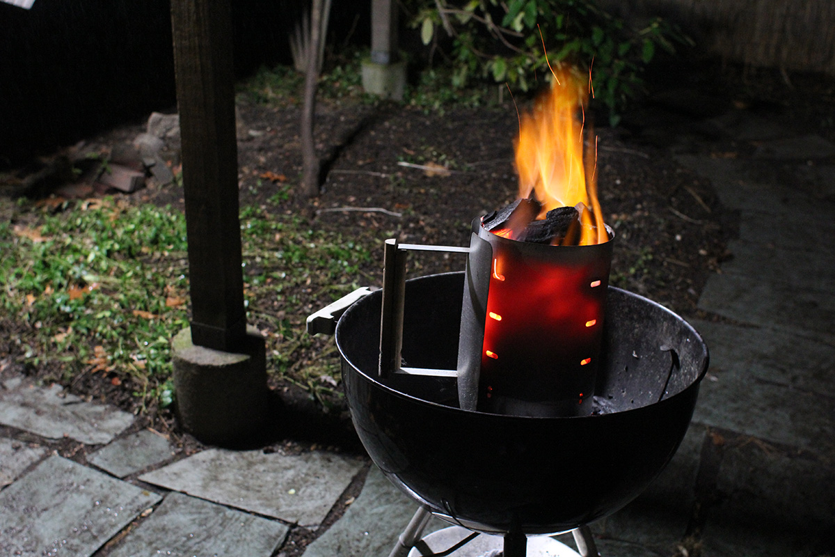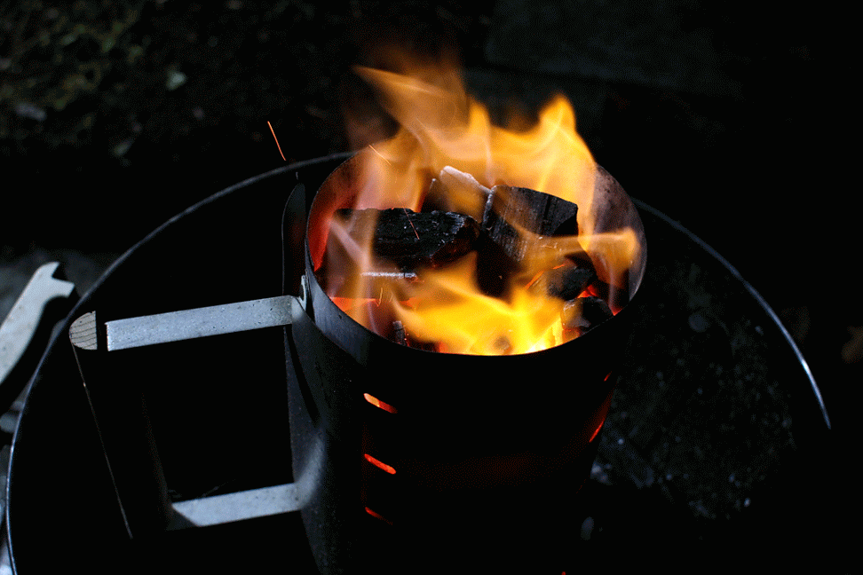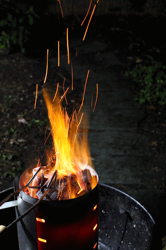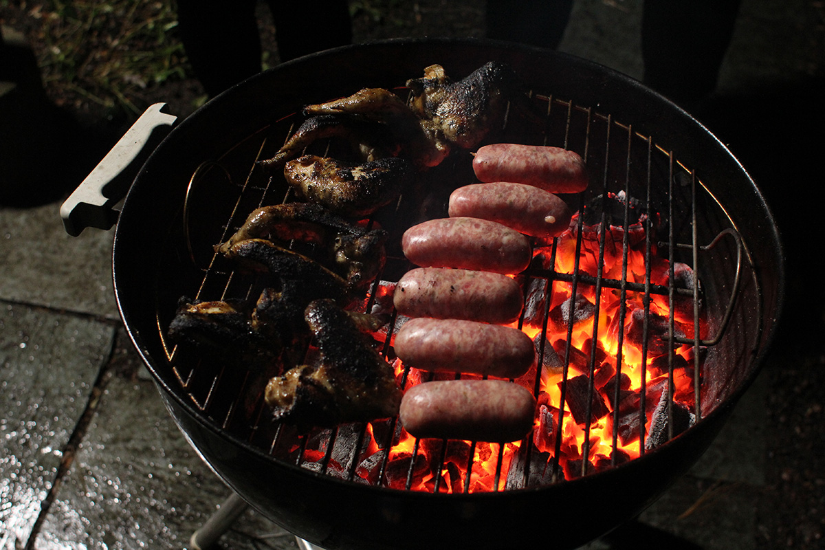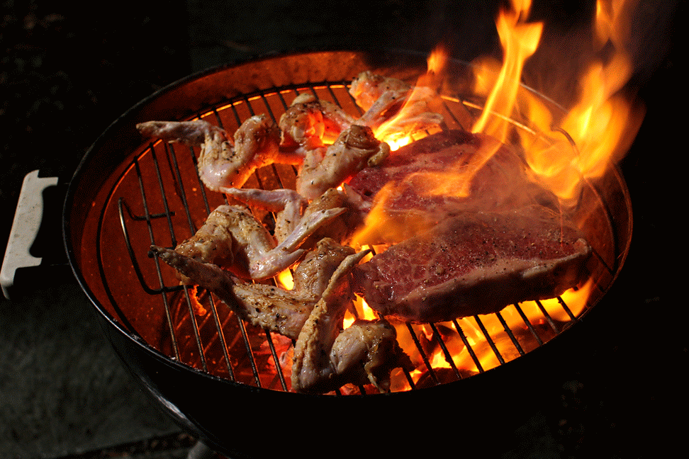 flaming grill foggy backyard bbq