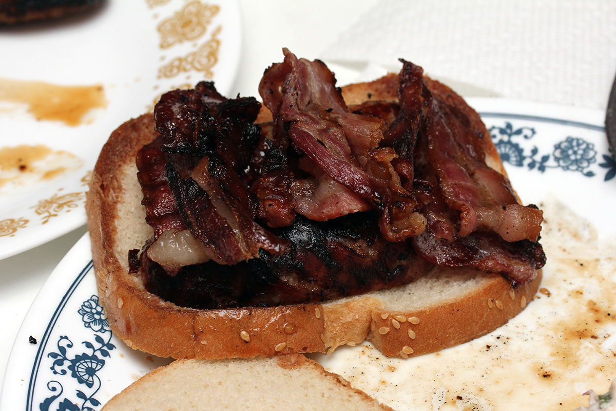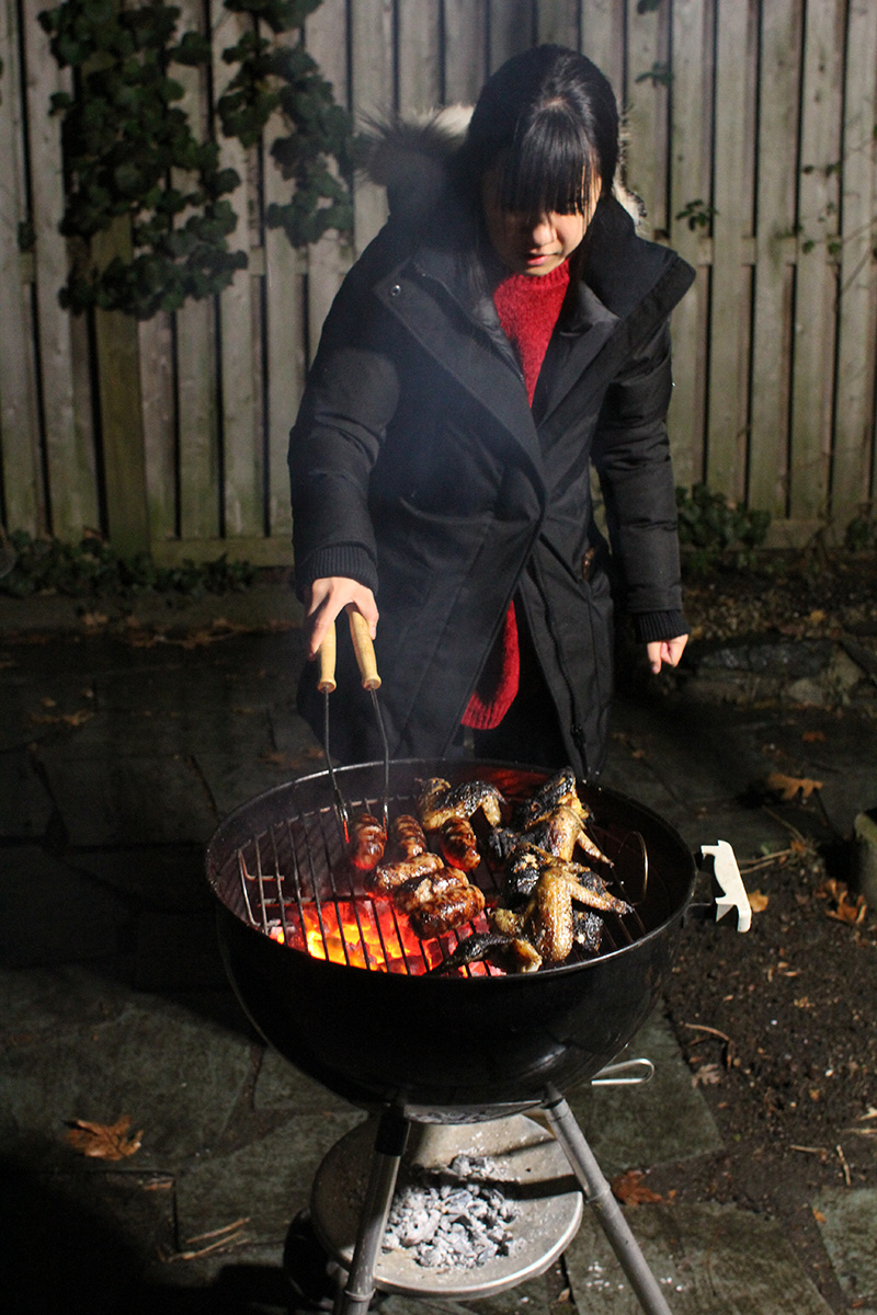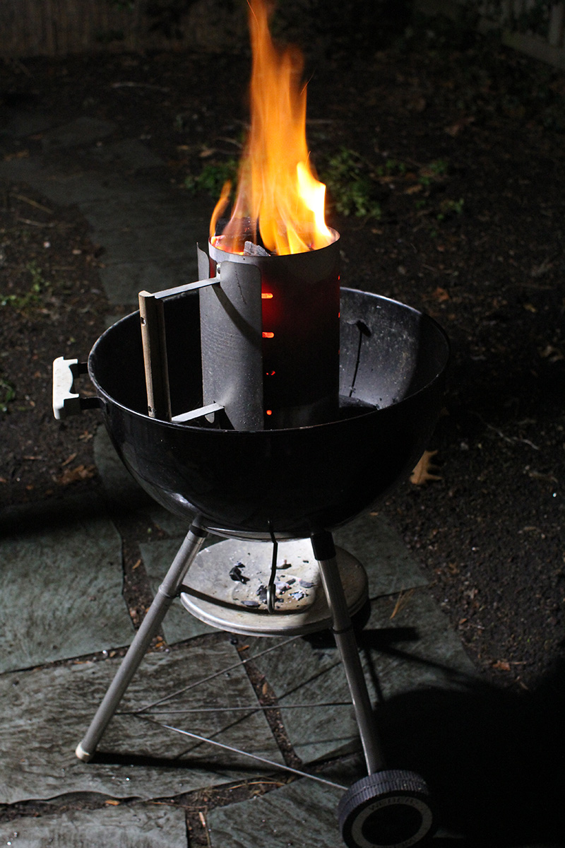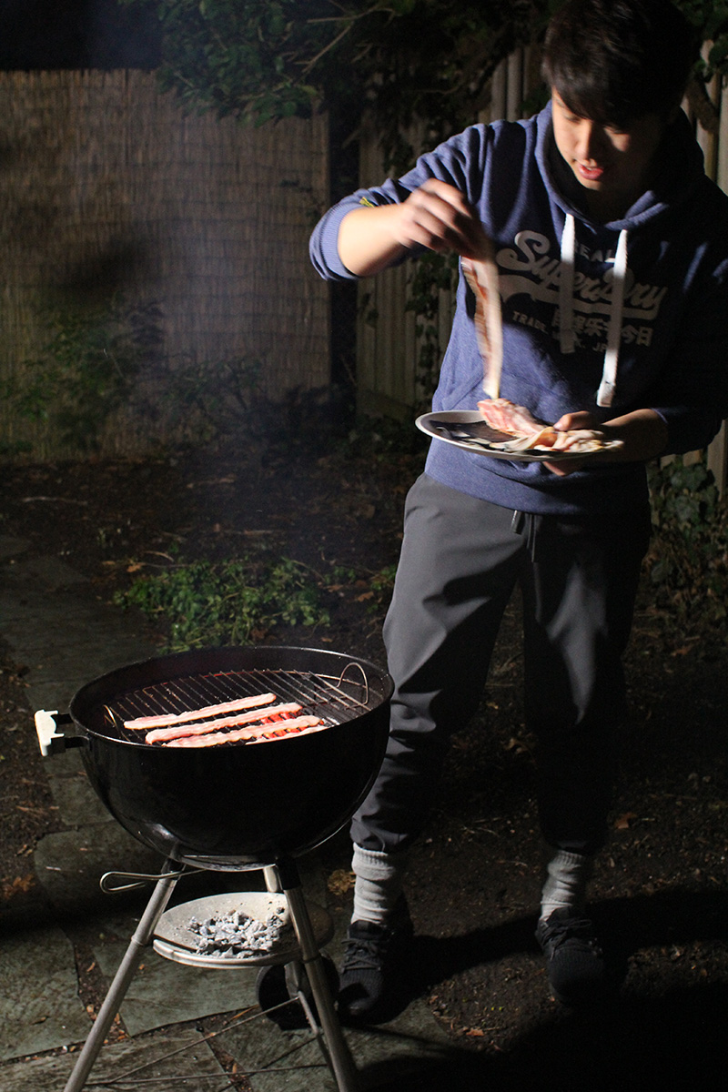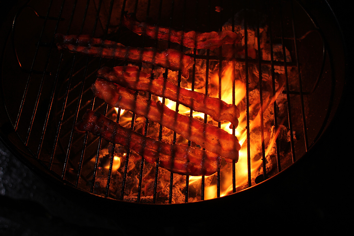 flaming grill foggy backyard bbq