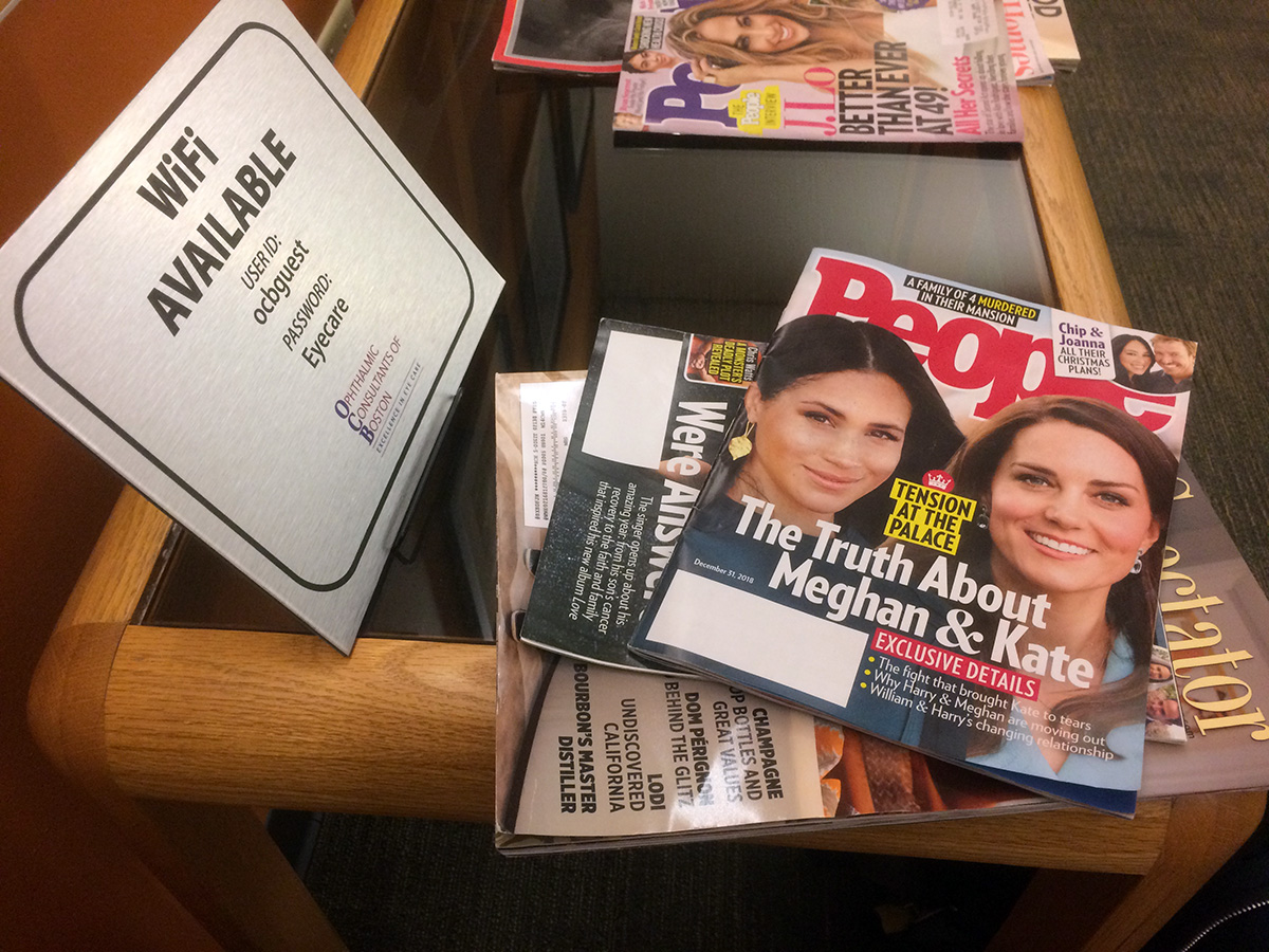 i then lingered in another waiting room, where soon enough i was called into the 2nd exam room with doctor hsu and another woman whom they never identified. the doctor took a quick look at my eyes with the machine and told me that basically my vision was the same as last year, and the only thing to do concerned about was my thin retinas, which could possibly tear in the future. there was nothing to do about it but monitor it, and if i noticed any sudden floating flashes of light, to call him immediately, because it meant my retina had teared and i'd need surgery to repair it. i was probably in the doctor's office no more than 5 minutes before i was set on my way, told not to come back until 1-2 years. they didn't even give me a prescription form, but i assume it'd probably the same as last time, which i still have.