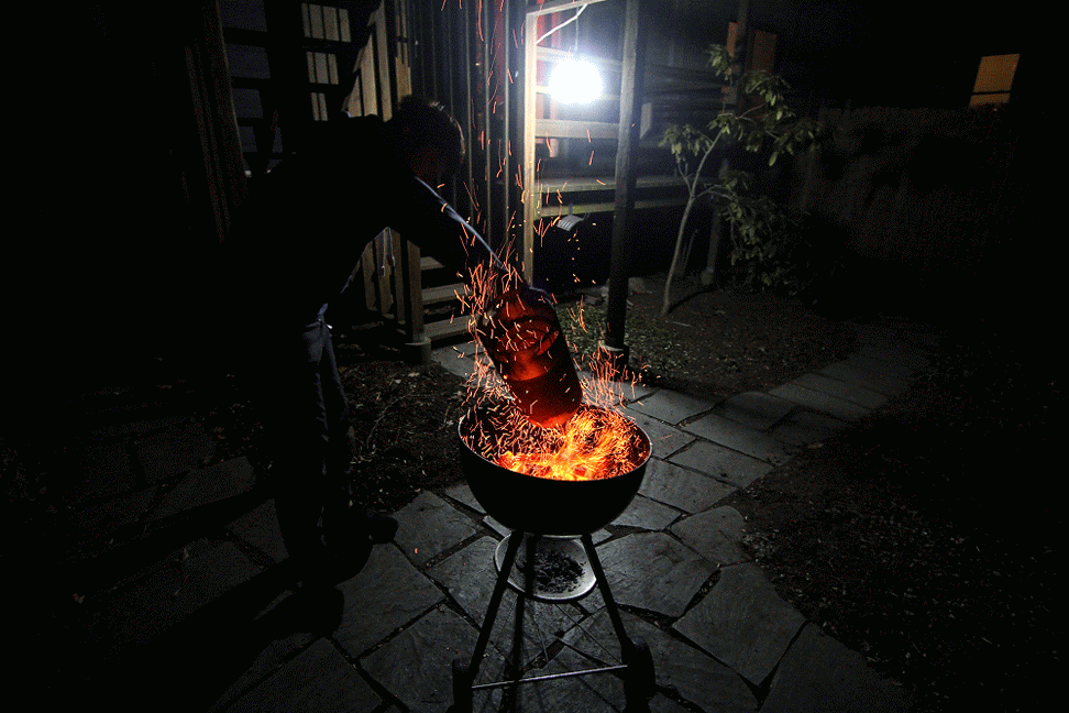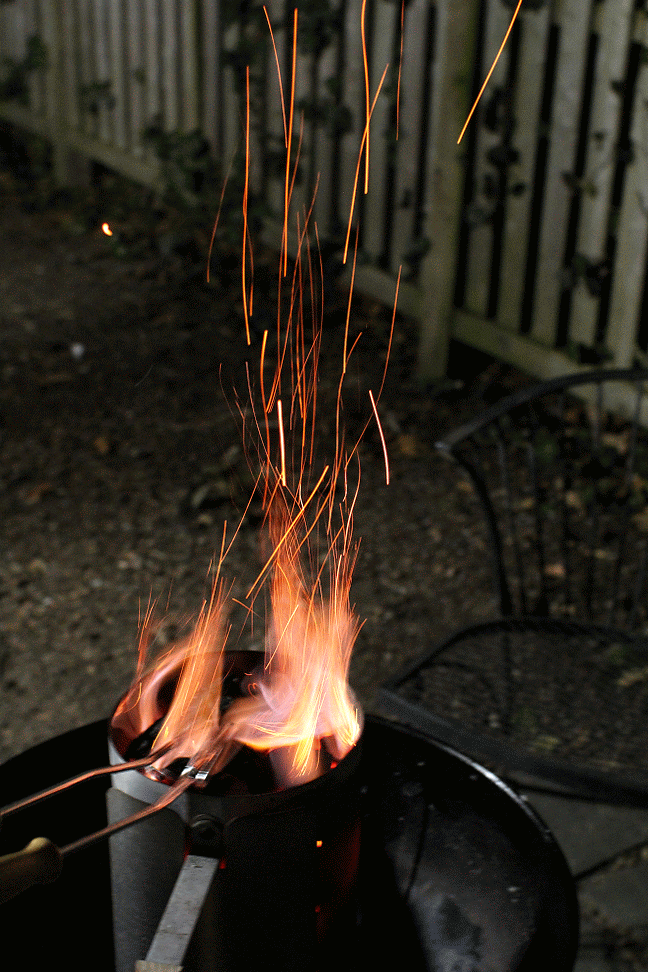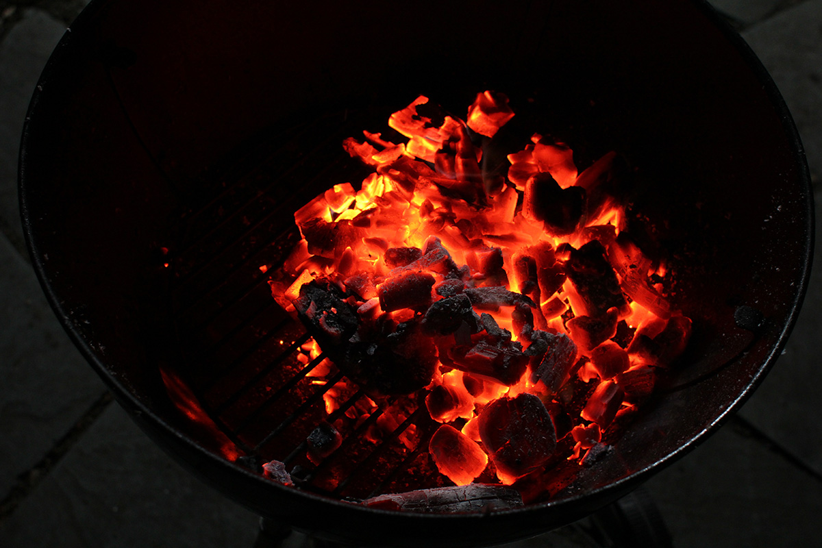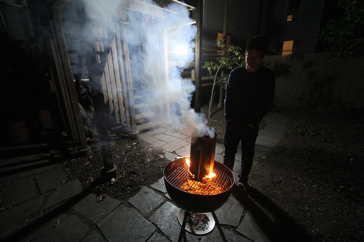 the first batch had already cooled enough by then it wasn't giving off much heat even though charcoal bits were still glowing. i think the first batch didn't burn as long because it was mostly small pieces of charcoal from the bottom of the old bag. the second batch charcoals were from the new bag and came out in large lumps that retained more heat. while we were waiting for the coals to reach grilling temperature, i also prepared the burger patties.